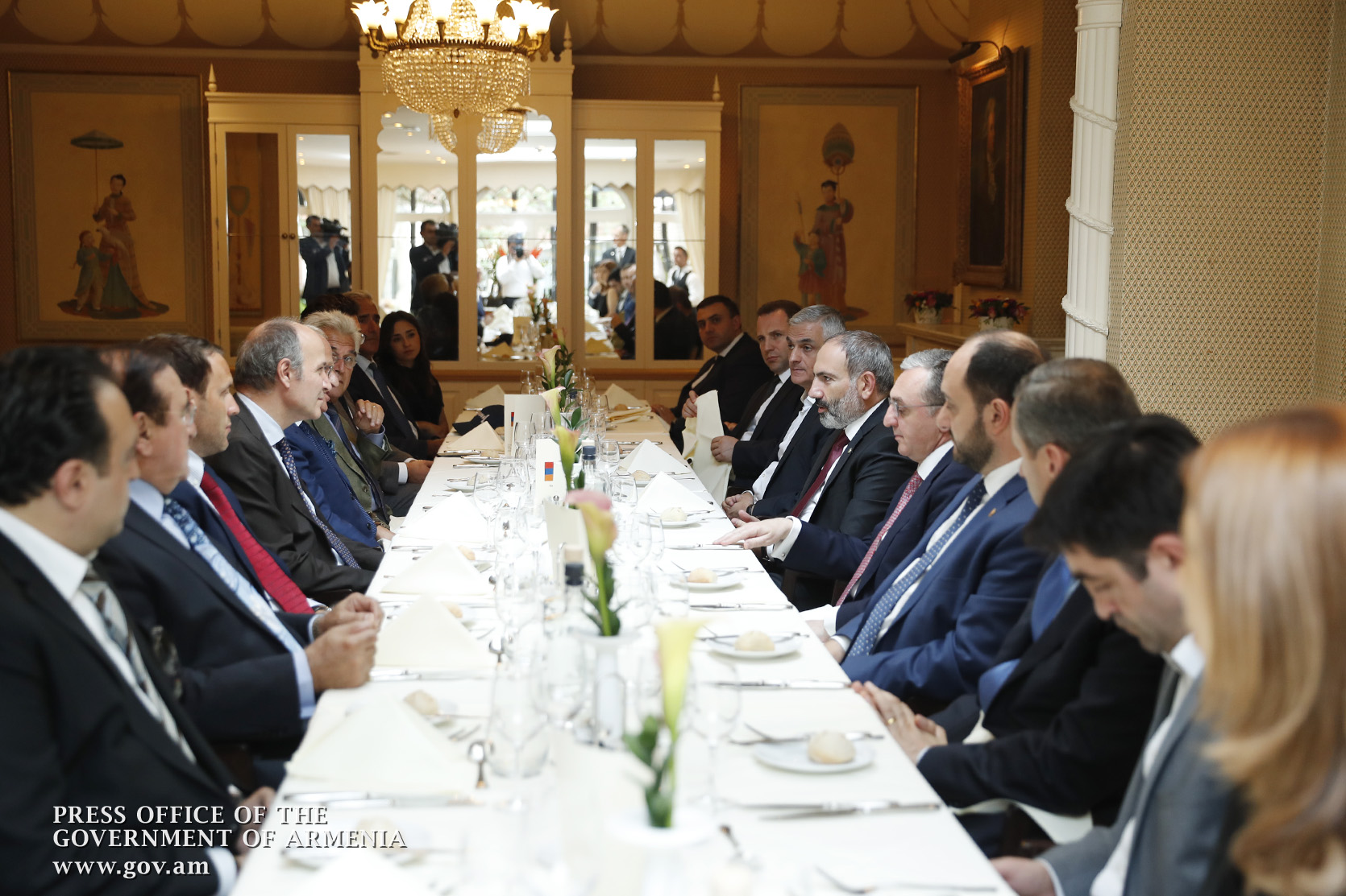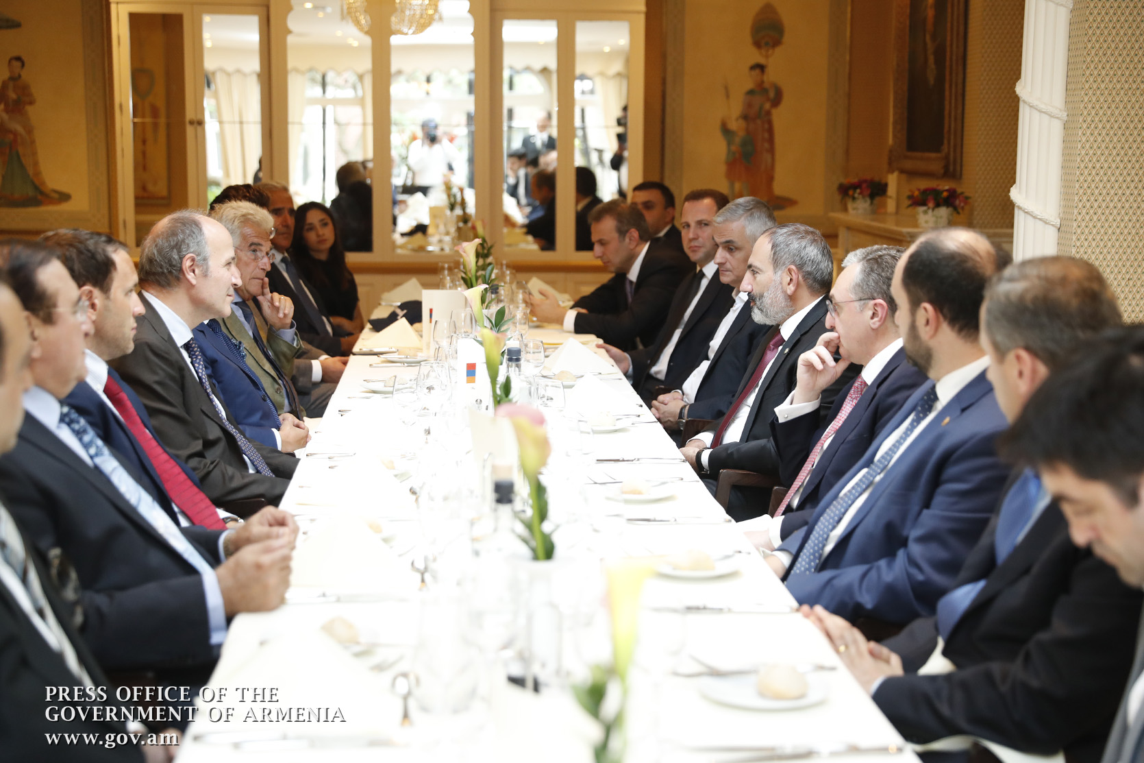 В рамках визита в Королевство Бельгия премьер-министр Никол Пашинян провел рабочий обед с местными армянскими бизнесменами, действующими в ювелирной и других сферах. На встрече также присутствовал председатель Армяно-бельгийской торгово-промышленной палаты.