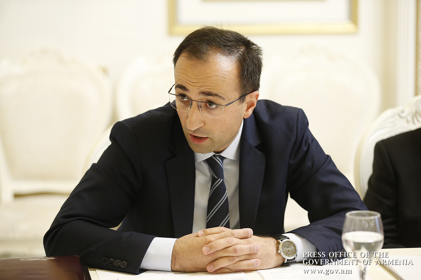 Министр здравоохранения Арсен Торосян затронул предоставляемые государством услуги, существующие проблемы и возможности их решения, а также механизмы финансирования медпомощи. По словам министра, в рамках предоставляемых в настоящее время финансовых средств возникают очереди, что создает серьезную проблему для тех граждан, для которых хирургическое вмешательство или медпомощь необходимы в данный момент. По его словам, очереди обусловлены нехваткой средств, которые распределяются по месяцам. Арсен Торосян подчеркнул, что в этом случае система медицинского страхования рассматривается как один из наиболее эффективных механизмов решения проблемы, и добавил, что сегодняшняя система страхования государственных служащих в целом эффективна. Министр отметил необходимость со временем обсудить вопрос о полном переходе на систему страхования.