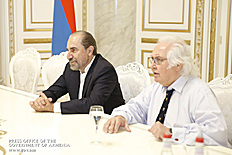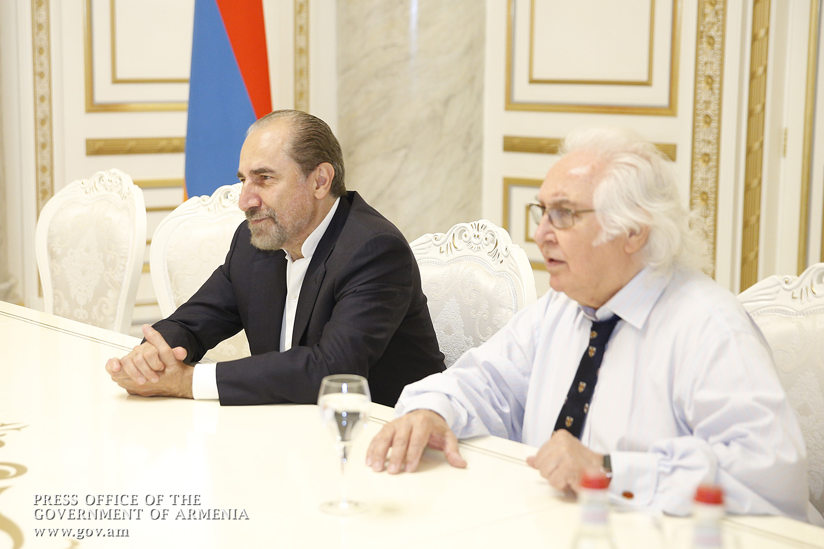 Премьер-министр Никол Пашинян принял бизнесмена, основателя и председателя совета фонда “Дети Армении” Гаро Армена и деятеля культуры Тони Шафрази, который сотрудничал с рядом всемирно известных деятелей искусства, в том числе Энди Уорхолом и Жаном-Мишелем Баскией.