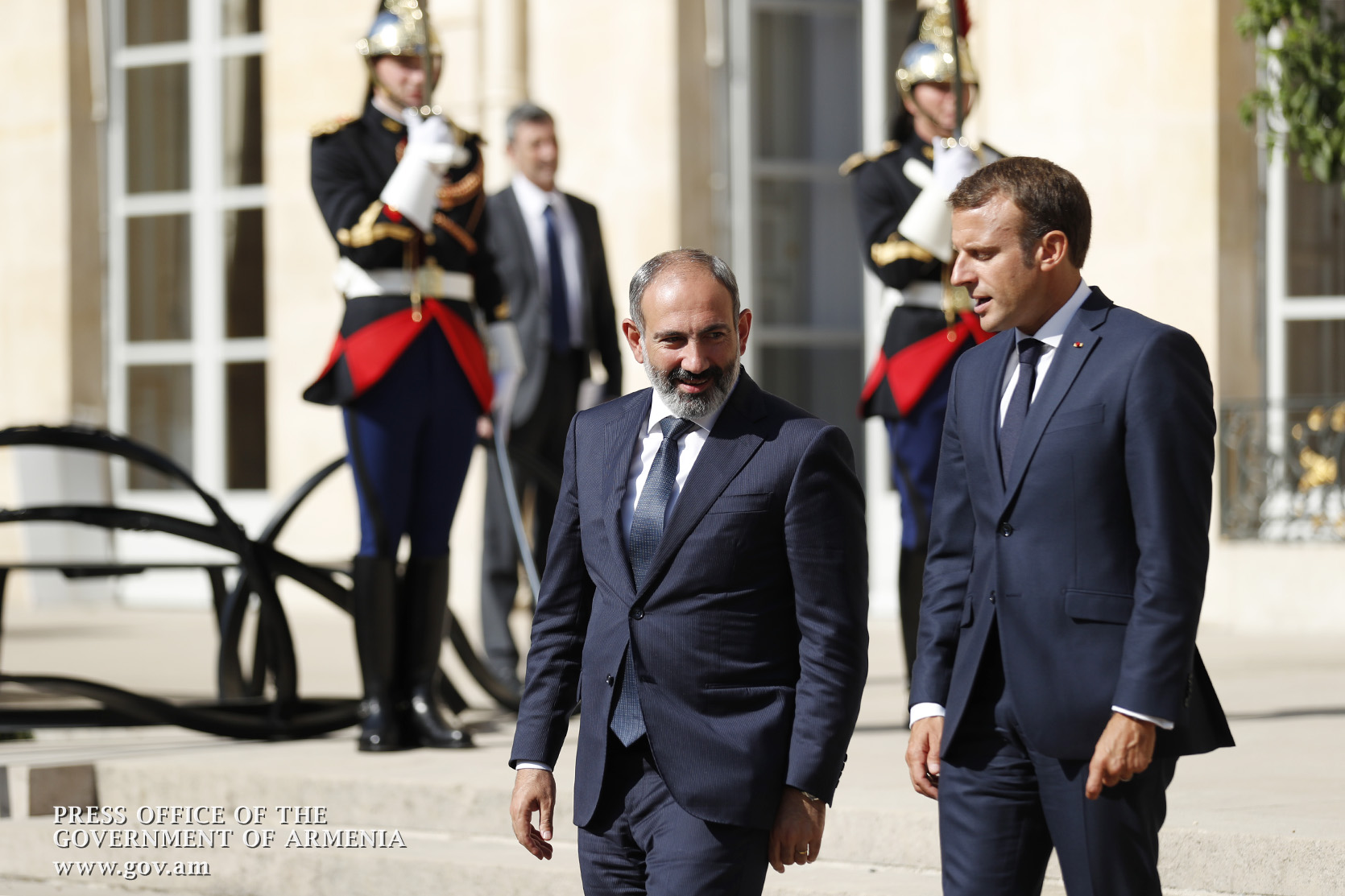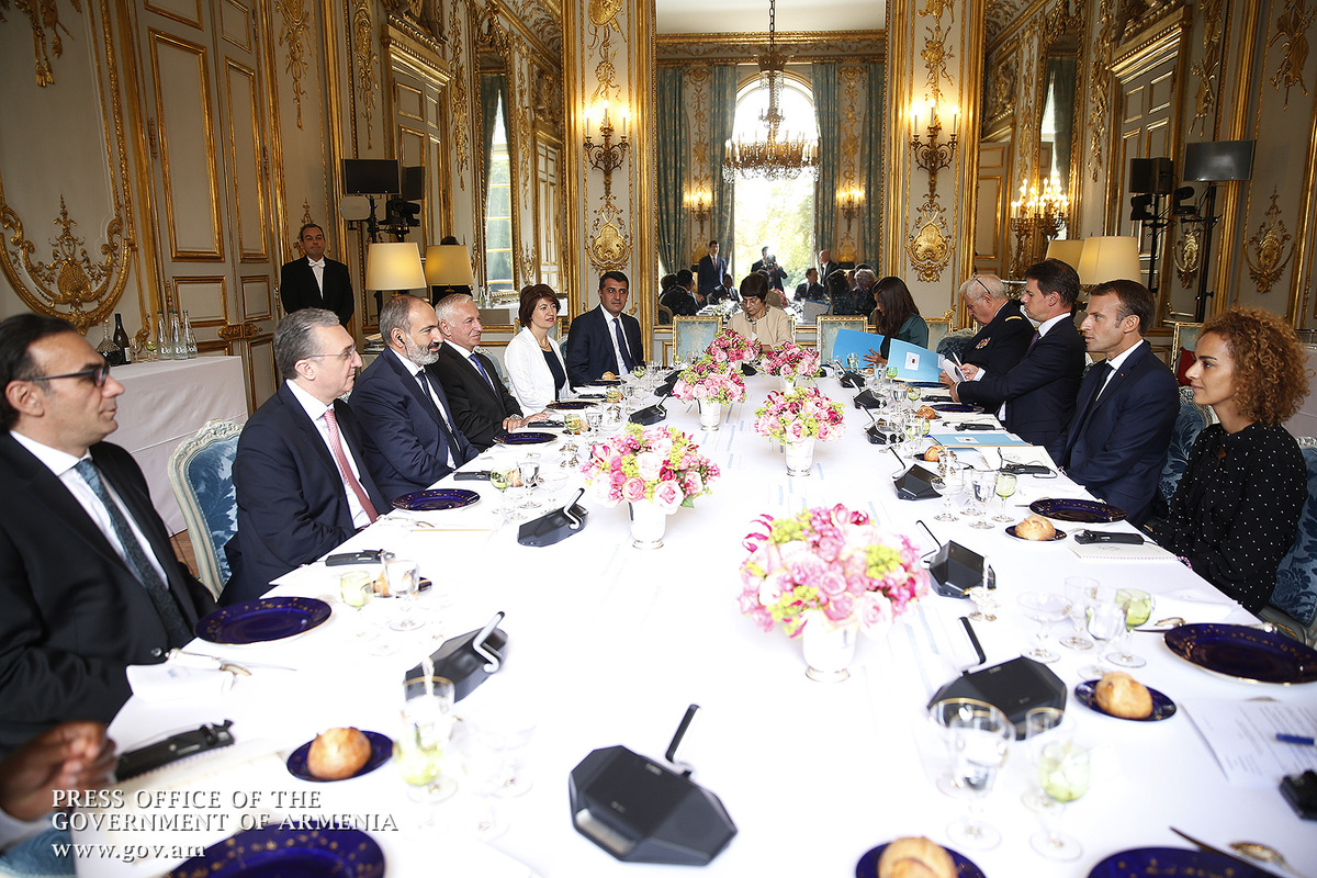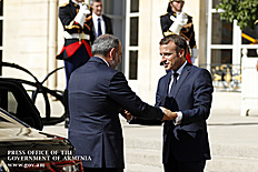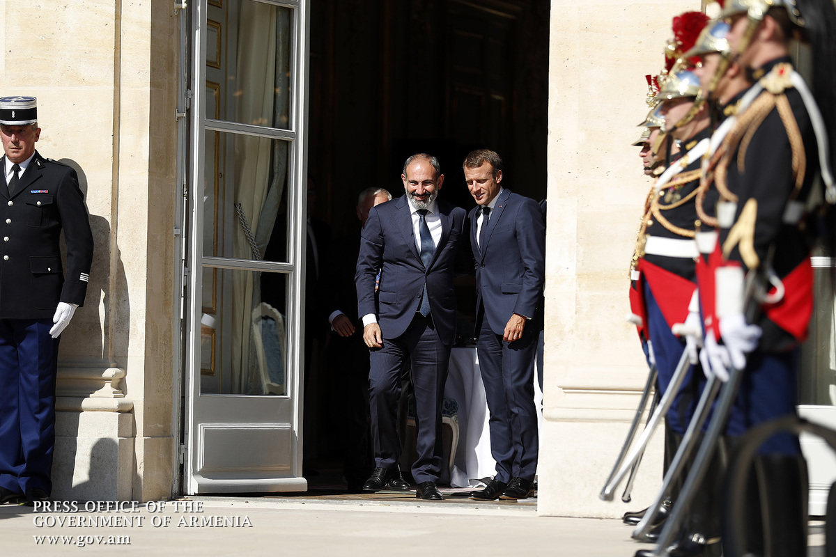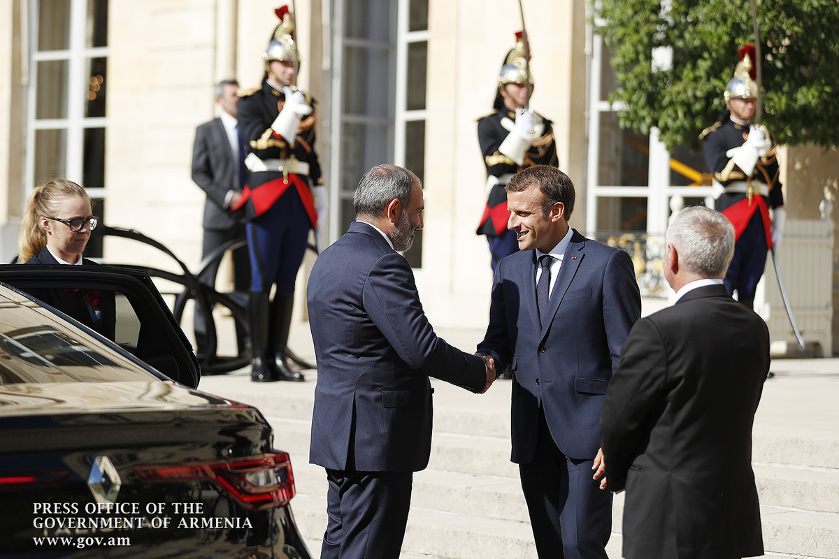 Находящийся во Франции с рабочим визитом премьер-министр Никол Пашинян в Елисейском дворце, в Париже, встретился с президентом Франции Эммануэлем Макроном. После церемонии встречи, рукопожатия и церемониальной фотографии лидеры двух стран продолжили переговоры в рамках рабочего обеда.