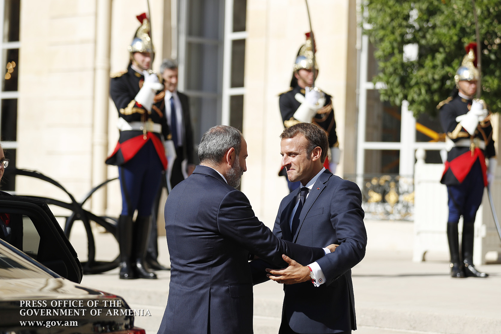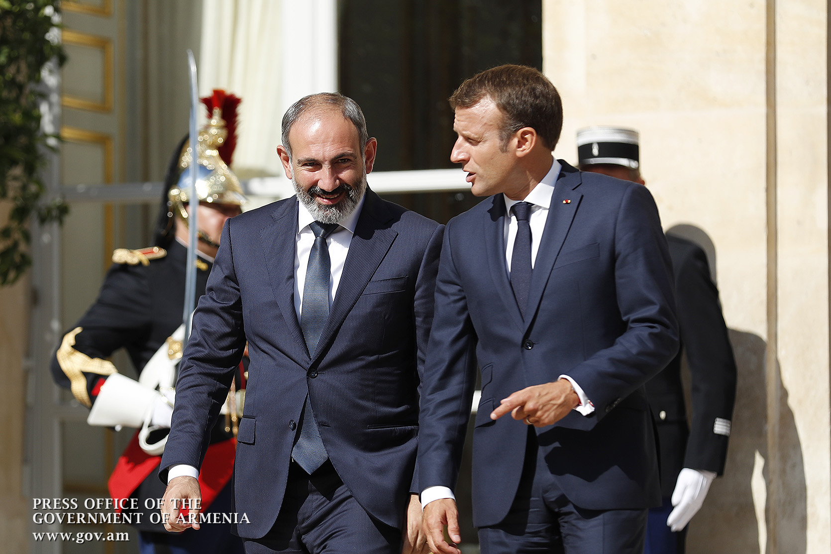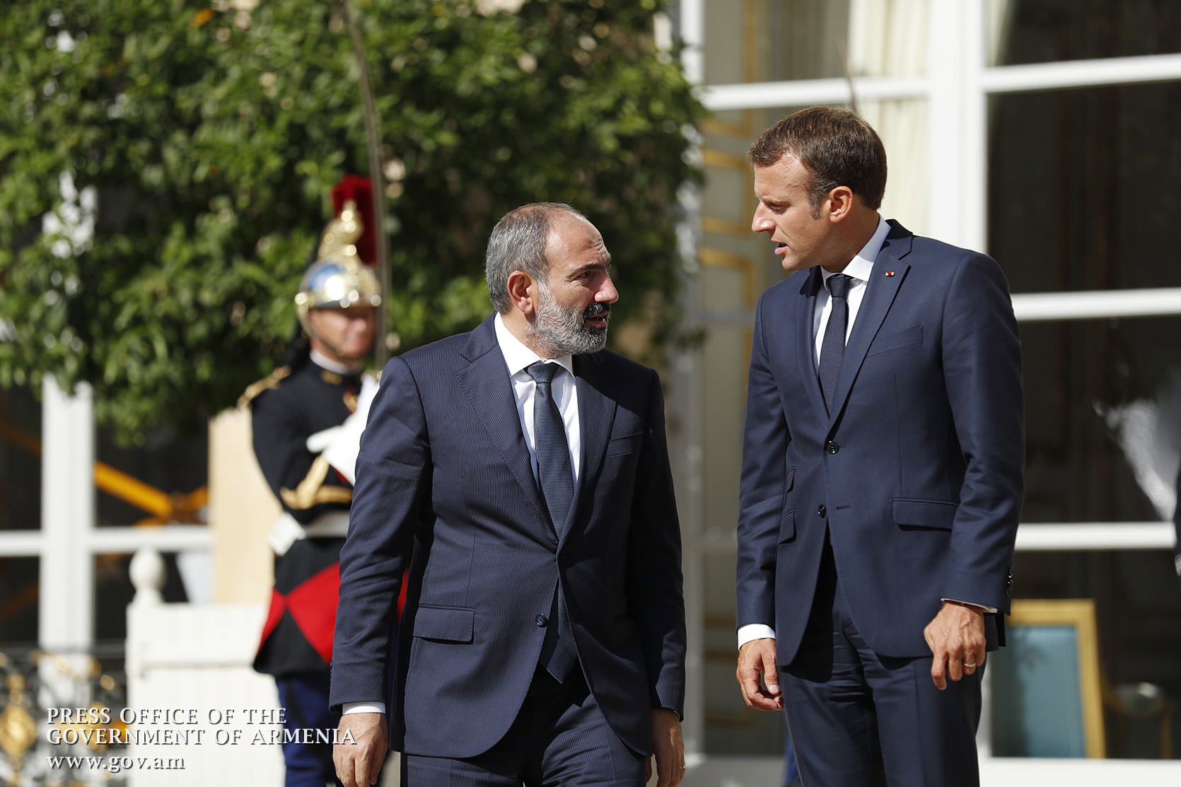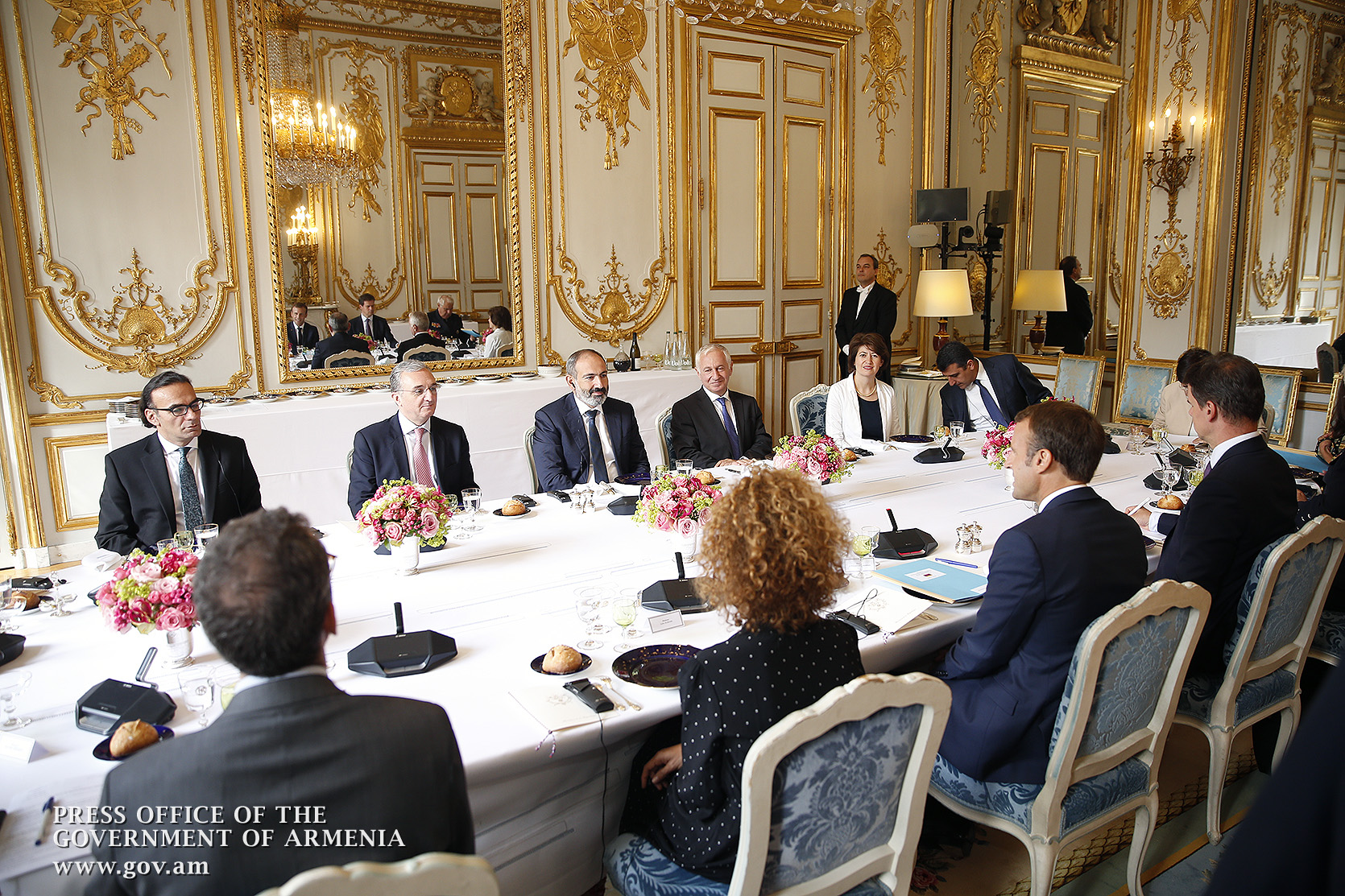 Находящийся во Франции с рабочим визитом премьер-министр Никол Пашинян в Елисейском дворце, в Париже, встретился с президентом Франции Эммануэлем Макроном. После церемонии встречи, рукопожатия и церемониальной фотографии лидеры двух стран продолжили переговоры в рамках рабочего обеда.