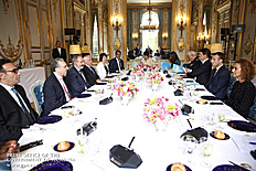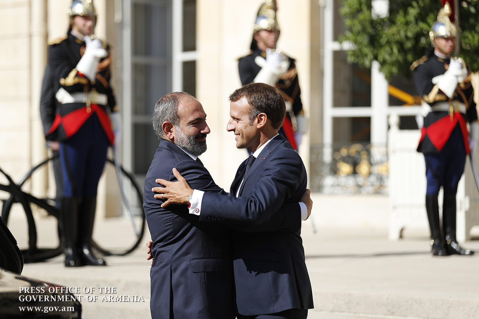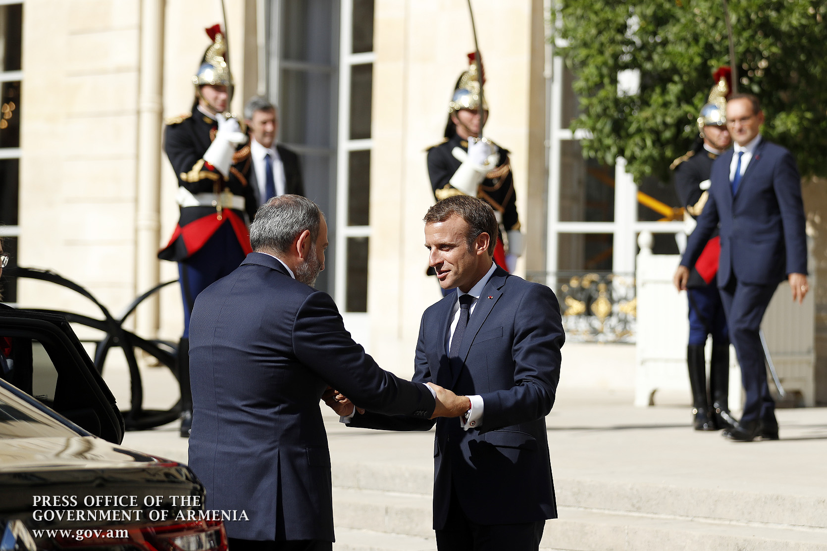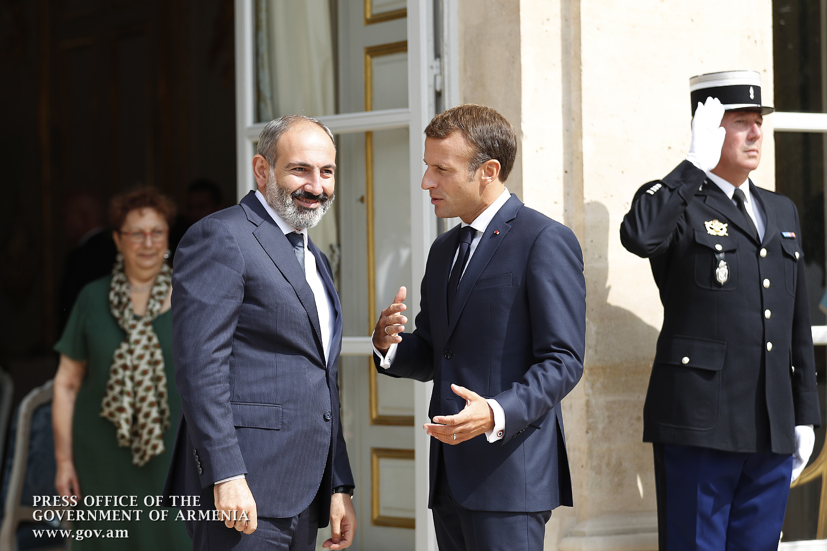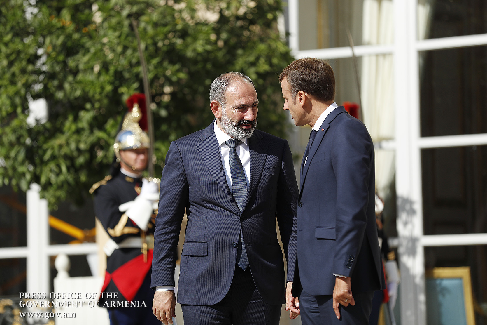 Находящийся во Франции с рабочим визитом премьер-министр Никол Пашинян в Елисейском дворце, в Париже, встретился с президентом Франции Эммануэлем Макроном. После церемонии встречи, рукопожатия и церемониальной фотографии лидеры двух стран продолжили переговоры в рамках рабочего обеда.