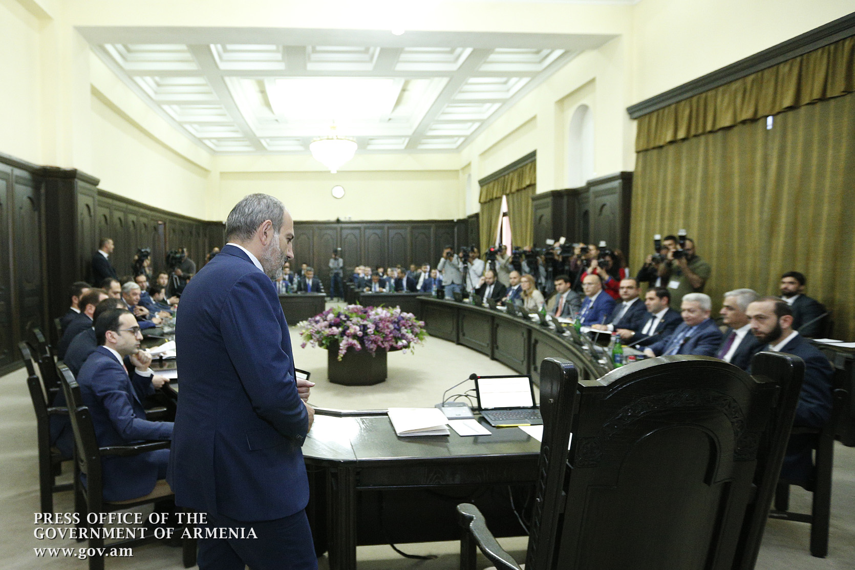 До начала обсуждения вопросов повестки премьер-министр отметил, что вечером выступит с заявлением: “Армения вступает в новый исторический этап, по итогам которого мы должны закончить начавшую весной ненасильственную бархатную народную революцию в Армении. Сегодня вечером я выступлю с более конкретным заявлением по этому вопросу”.