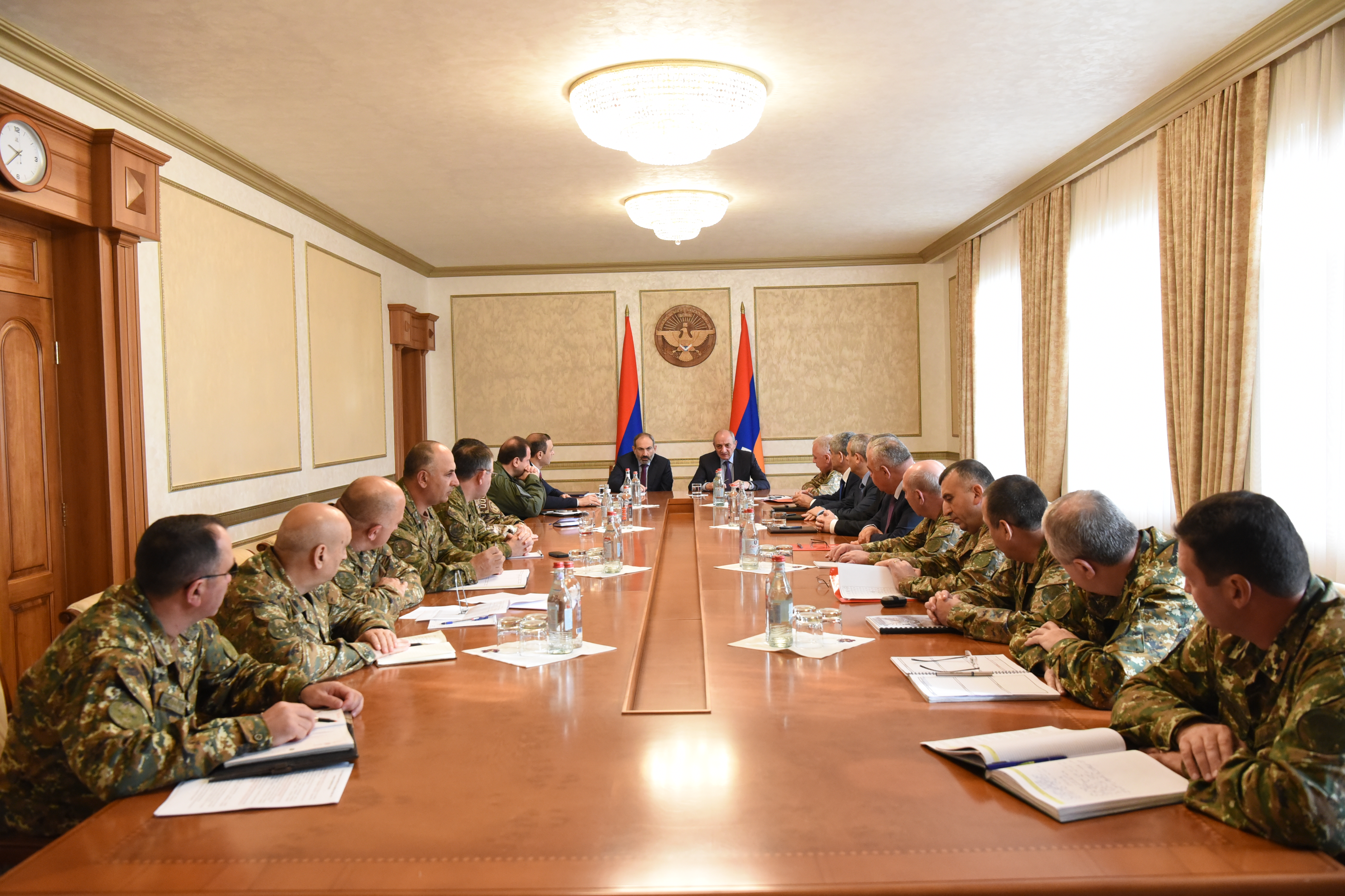 На встрече в расширенном составе были обсуждены вопросы, касающиеся последовательного повышения боеготовности Армии обороны, военного сотрудничества Арцаха и Армении, ситуации на границах, внешней и внутренней политики двух армянских государств и взаимодействия в данных направлениях.