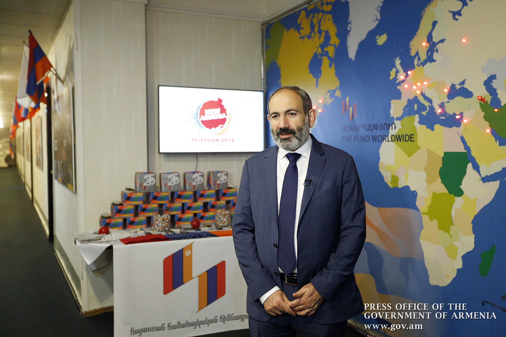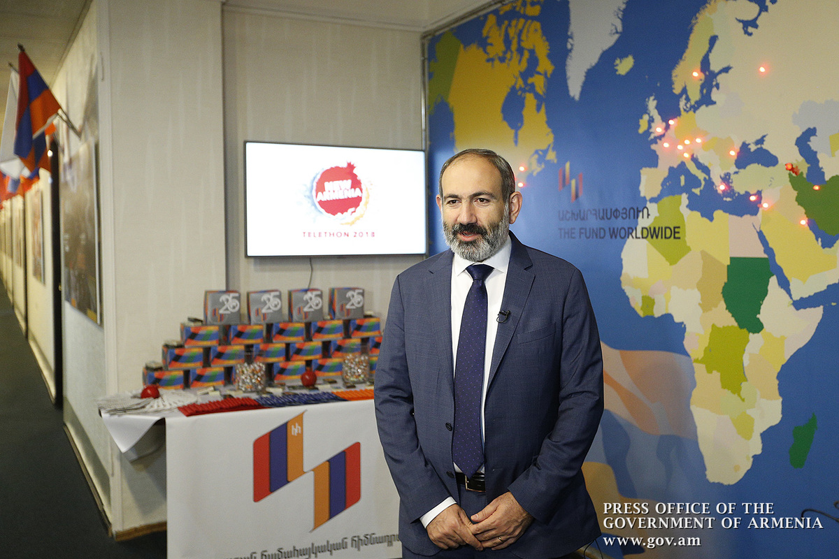 В рамках ежегодного 21-го телемарафона Всеармянского фонда “Айастан” исполняющий обязанности премьер-министра Армении Никол Пашинян утром 23 ноября посетил офис фонда. Никол Пашинян из фонда премьер-министра пожертвовал Всеармянскому фонду “Айастан” 1 млн драмов, а из своих личных средств – 500 тысяч драмов.