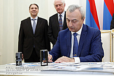 После встречи состоялась церемония гашения марок, посвященных Государственной премии Республики Армения за всемирный вклад в сферу информационных технологий. На церемонии присутствовали исполняющий обязанности премьер-министра Республики Армения Никол Пашинян, соучредитель и президент компании National Instruments Джеймс Трушард, исполняющий обязанности министра транспорта, связи и информационных технологий Республики Армения Акоп Аршакян, председатель Союза филателистов Армении Овик Мусаелян и председатель совета ЗАО “Айпост” Хуан Пабло Гечиджян.