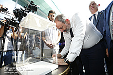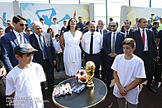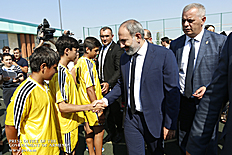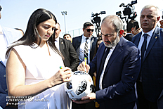 Премьер-министр подписал мяч, с которым на стадионе спорткомплекса был разыгран первый турнир по мини-футболу - финал Кубка Франкофонии. В финале Кубок оспаривали команды “Масис колледж” и “Мармарашен” Араратской области.