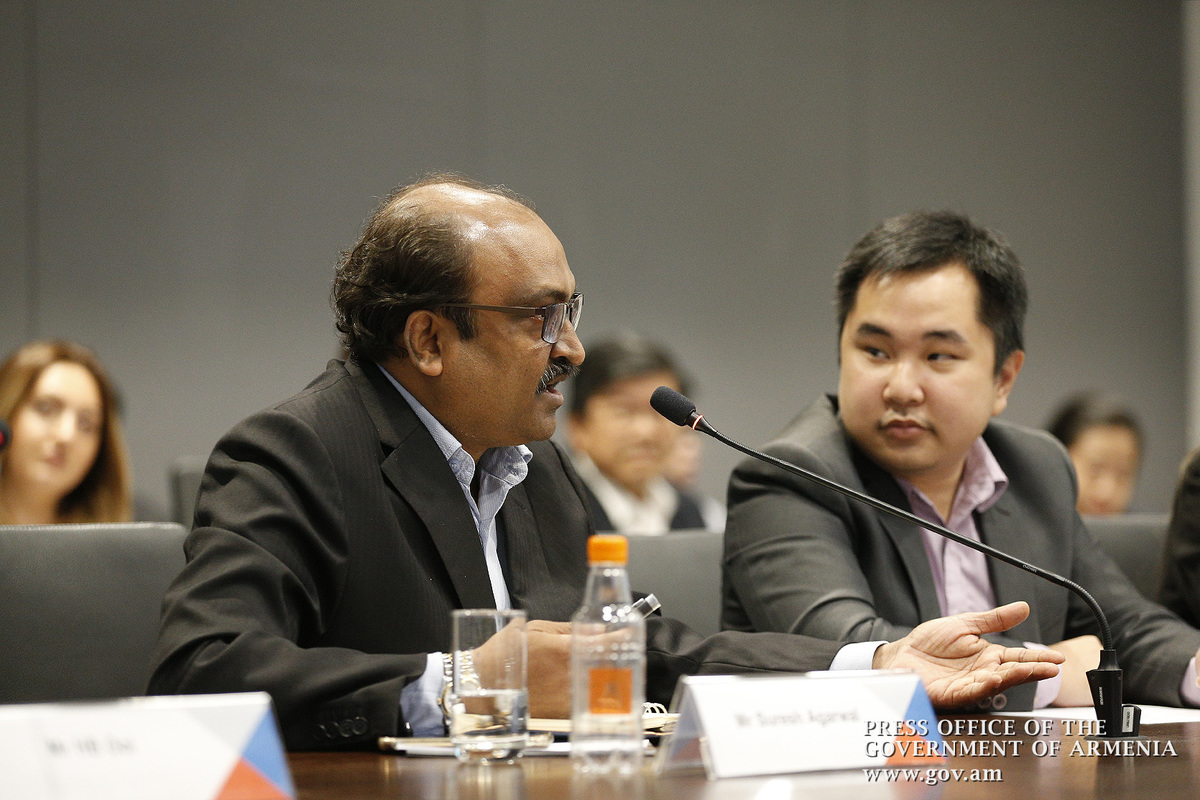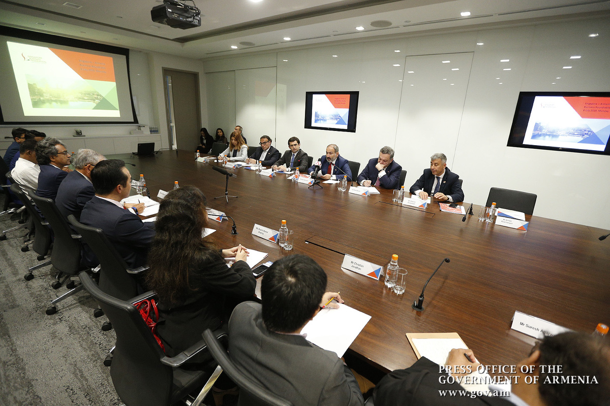 Премьер-министр коснулся инициированных правительством Республики Армения реформ, рассказал о шагах по улучшению налоговой и таможенной сферы, а также реформах судебной системы, направленных на создание гарантий для защиты иностранных инвестиций. Никол Пашинян отметил, что бархатная революция, которая произошла в прошлом году в Армении, политические радикальные изменения не вызвали экономических потрясений, банковская система продолжала стабильно действовать, не было зафиксировано случаев перераспределения собственности, что было обусловлено ненасильственным и мирным характером этих событий. Глава правительства представил макроэкономические показатели последних месяцев, отметив, что они продолжают расти, и коснулся сфер, в которых есть потенциал для сотрудничества: информационные технологии, воздушное сообщение, туризм, в том числе эко- и гастротуризм, пищевая промышленность, воздушное сообщение, инфраструктура и т.д.