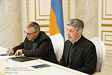 Приветствуя представителя Святого Престола в правительстве, премьер-министр высоко оценил его значительные усилия по укреплению отношений между Арменией и Ватиканом. По словам Никола Пашиняна, межгосударственное сотрудничество Армения-Ватикан основано на политическом диалоге высокого уровня, о чем свидетельствует динамика официальных взаимных визитов и встреч на высоком уровне. Премьер-министр отметил, что Армения придает большое значение углублению двусторонних отношений, а также развитию связей между Армянской Апостольской церковью и Римско-католической церковью. Глава правительства рассказал о происходящих в нашей стране радикальных реформах и процессах.