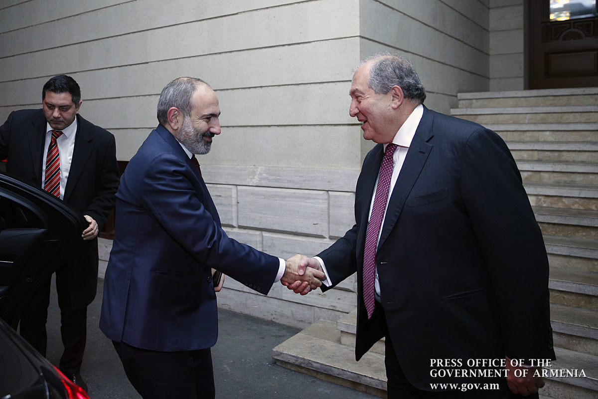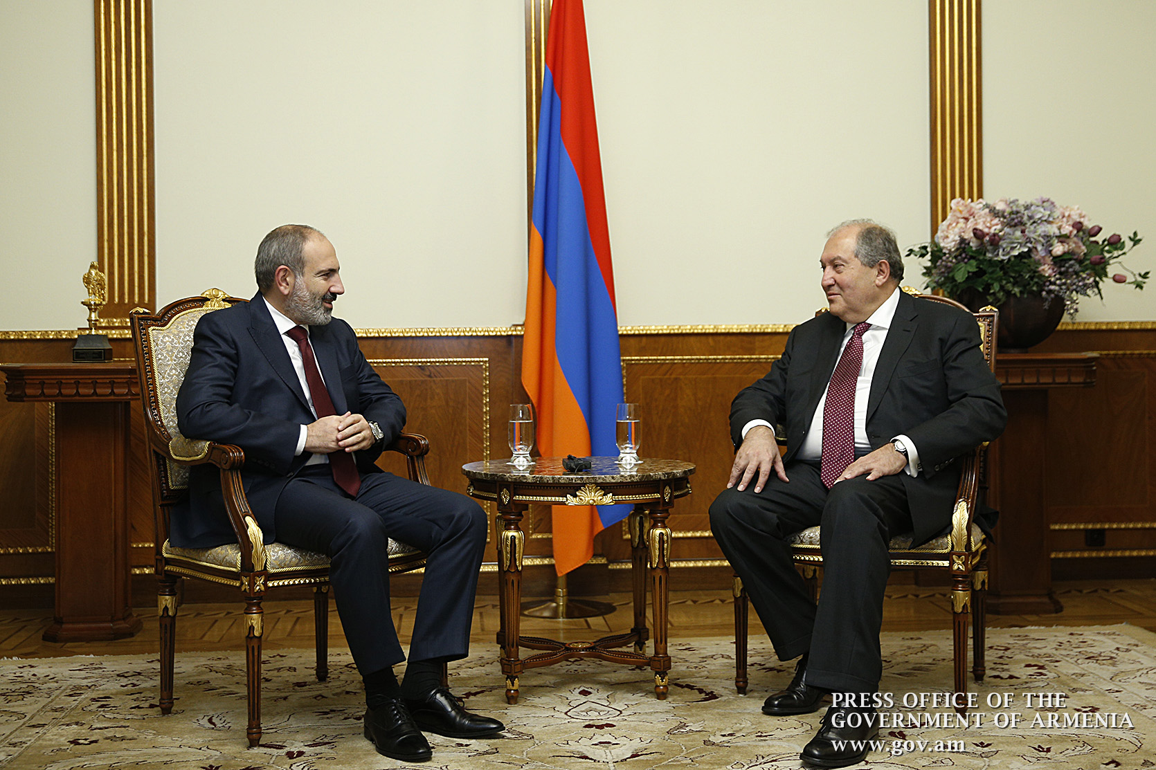 Премьер-министр Никол Пашинян сегодня в резиденции президента Республики Армения провел рабочую встречу с президентом Арменом Саркисяном.