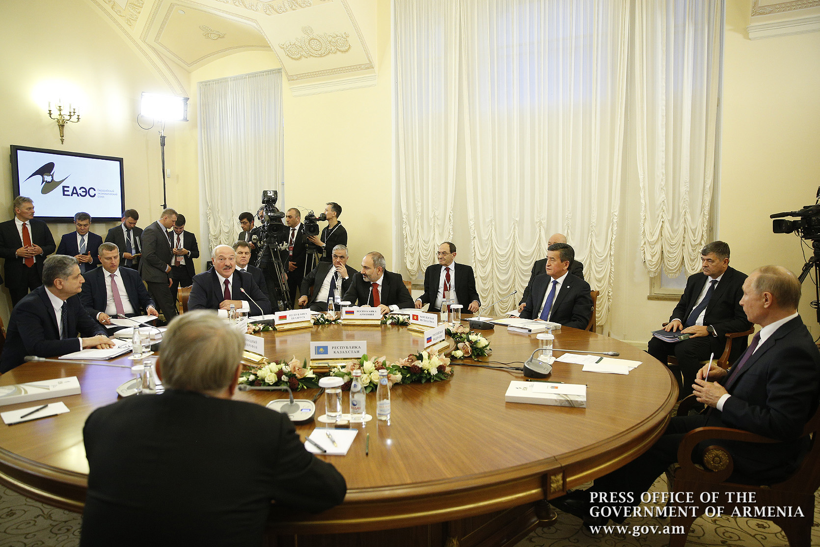Премьер-министр Республики Армения Никол Пашинян в Президентской библиотеке имени Б. Н. Ельцина принял участие в заседании Высшего Евразийского экономического совета. В заседании приняли участие президент Беларуси Александр Лукашенко, президент Киргизии Сооронбай Жээнбеков, президент России Владимир Путин, первый президент Казахстана, почетный председатель Высшего Евразийского экономического совета Нурсултан Назарбаев, председатель Коллегии Евразийской экономической комиссии Тигран Саркисян. Во встрече в расширенном составе принял участие президент Молдовы Игорь Додон.