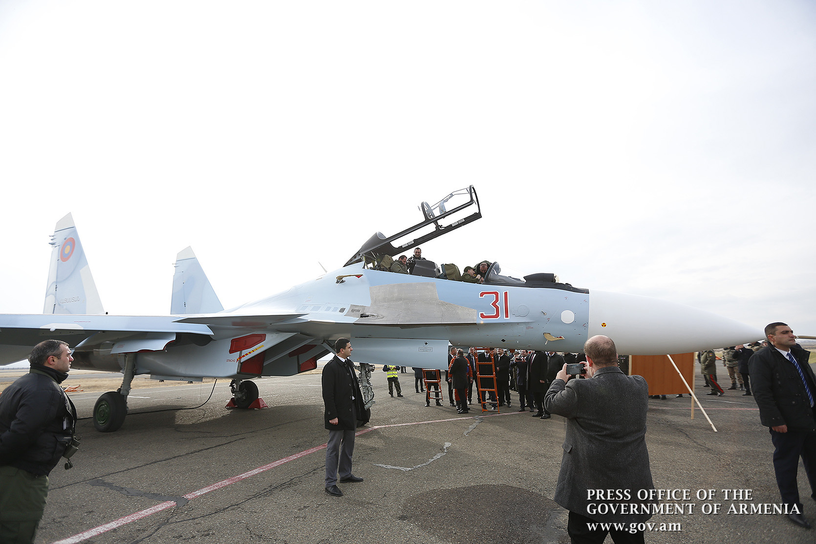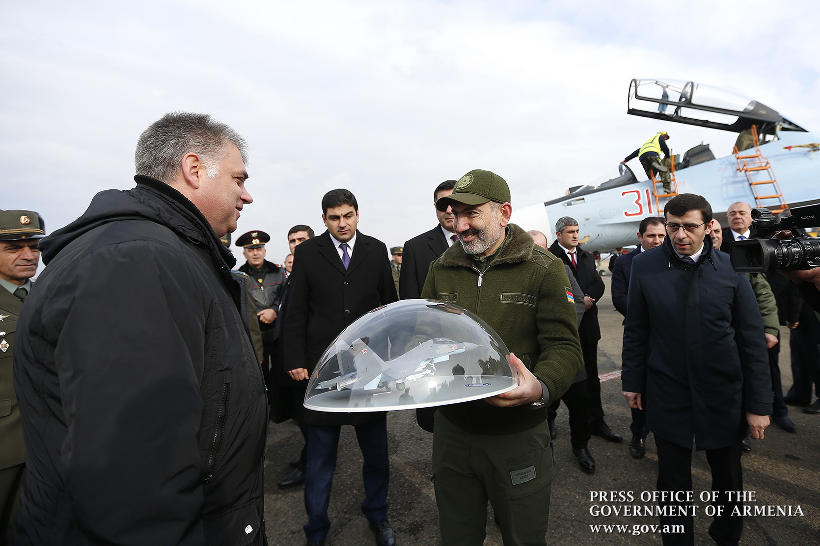 Премьер-министру Николу Пашиняну представлены пополнившие Вооруженные силы Республики Армения многофункциональные истребители Су-30СМ. Премьер-министр вместе с министром обороны Давидом Тонояном и начальником Генерального штаба Вооруженных сил Артаком Давтяном наблюдал за демонстрационными полетами истребителей.