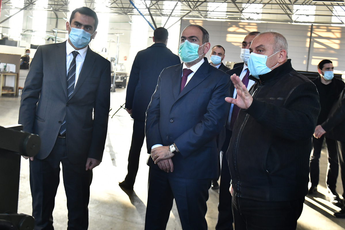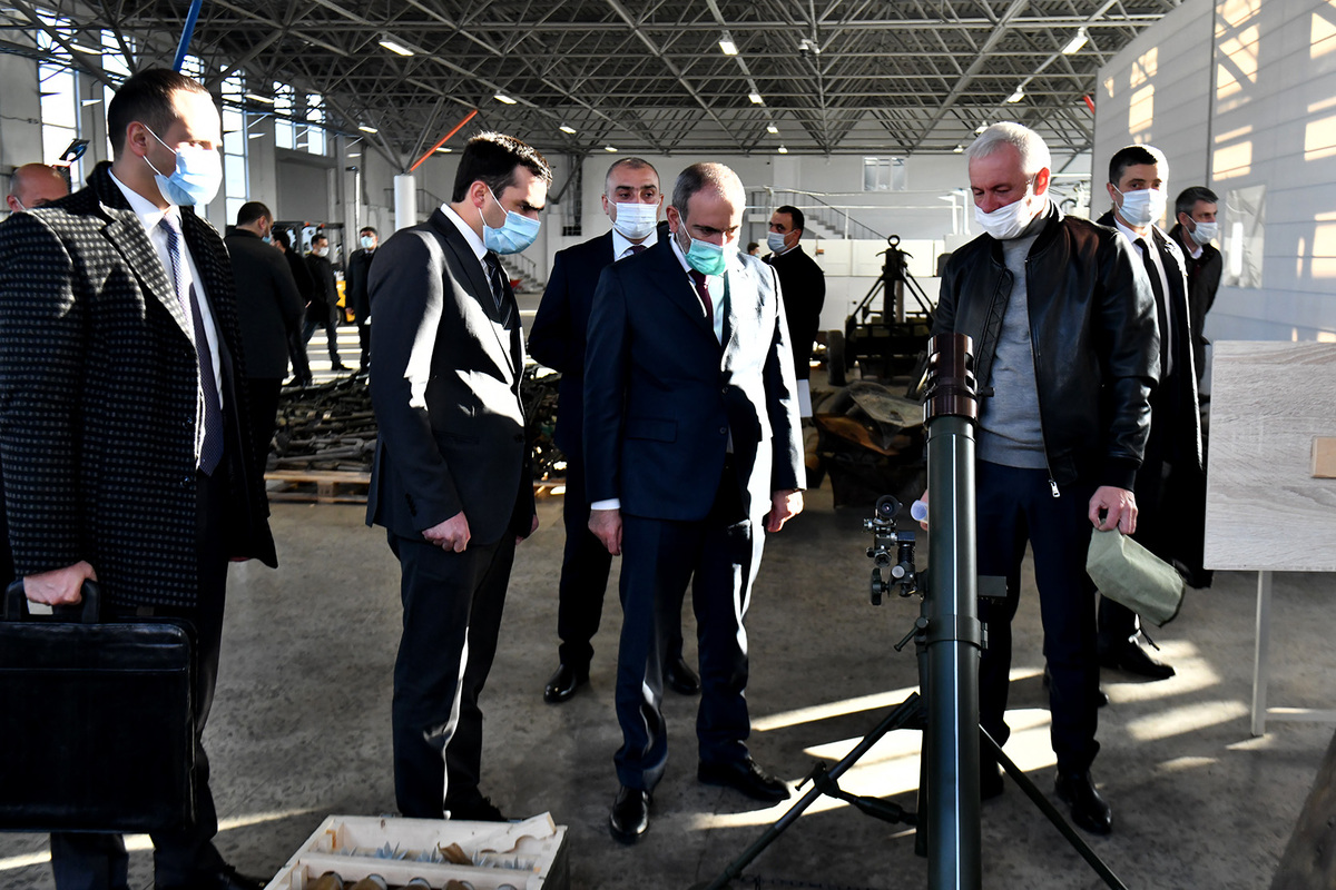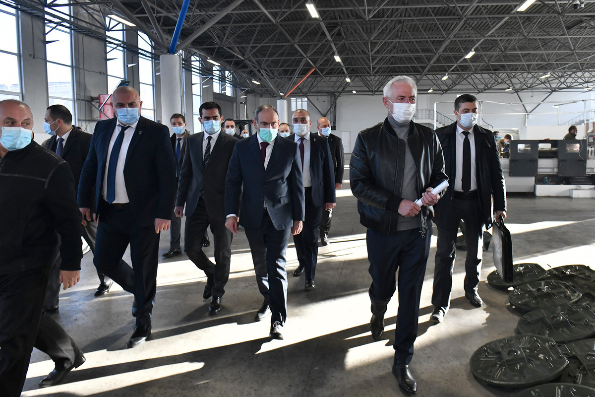 Премьер-министр Никол Пашинян в сопровождении министра высокотехнологической промышленности Акопа Аршакяна посетил научно-производственное объединение “Гарни Лер” и новый военно-промышленный завод “Арсенал”.