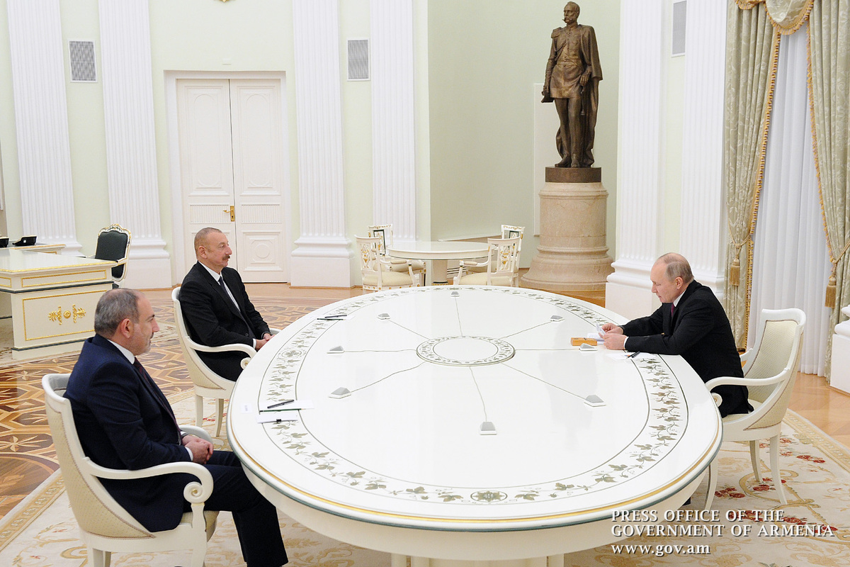 Премьер-министр Никол Пашинян провел в Москве трехстороннюю встречу с президентом России Владимиром Путиным и президентом Азербайджана Ильхамом Алиевым. Была обсуждена реализация пунктов принятого лидерами трех стран Заявления от 9 ноября 2020 года.