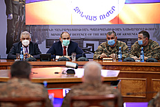Премьер-министр Никол Пашинян провел в министерстве обороны совещание с высшим офицерским составом Вооруженных сил. В совещании приняли участие министр обороны Вагаршак Арутюнян, заместители начальника Генштаба, генерал-лейтенант Артак Давтян и другие.