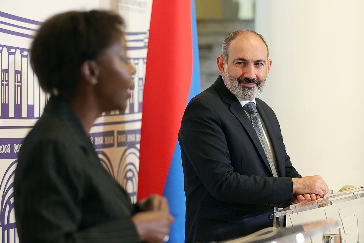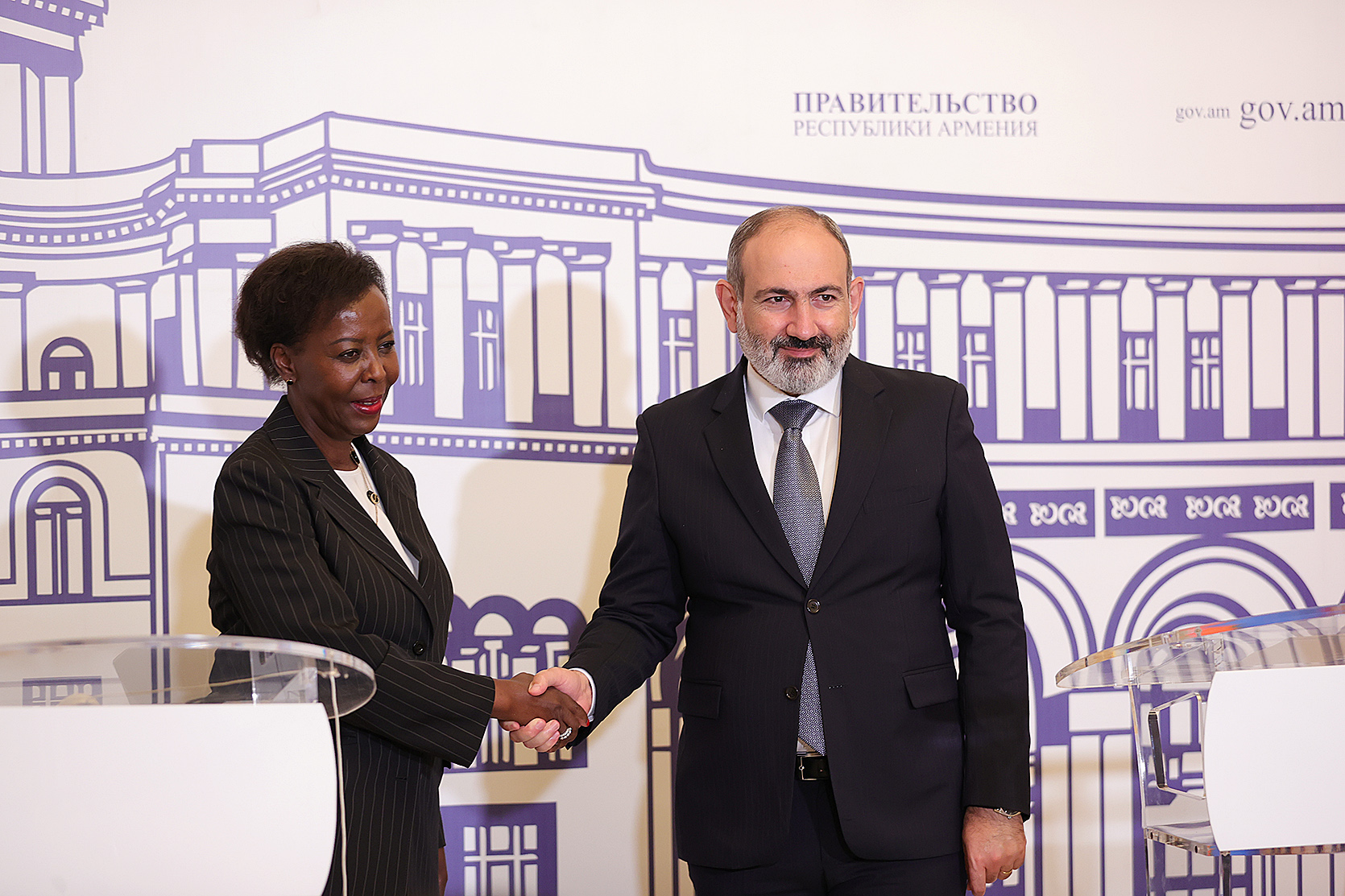 Премьер-министр Пашинян и генеральный секретарь МОФ Луиз Мушикивабо выступили с заявлениями для представителей СМИ