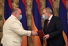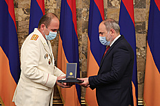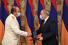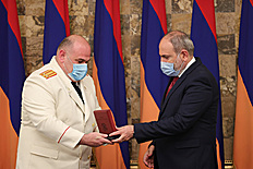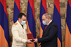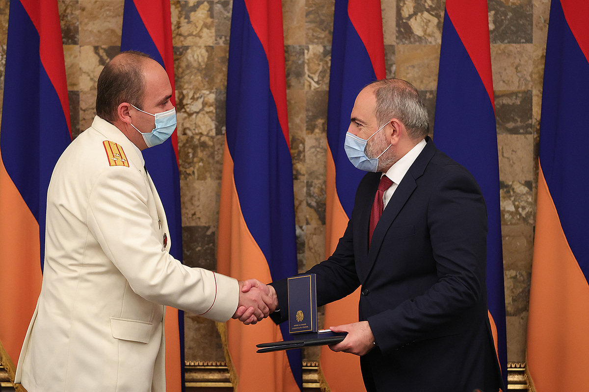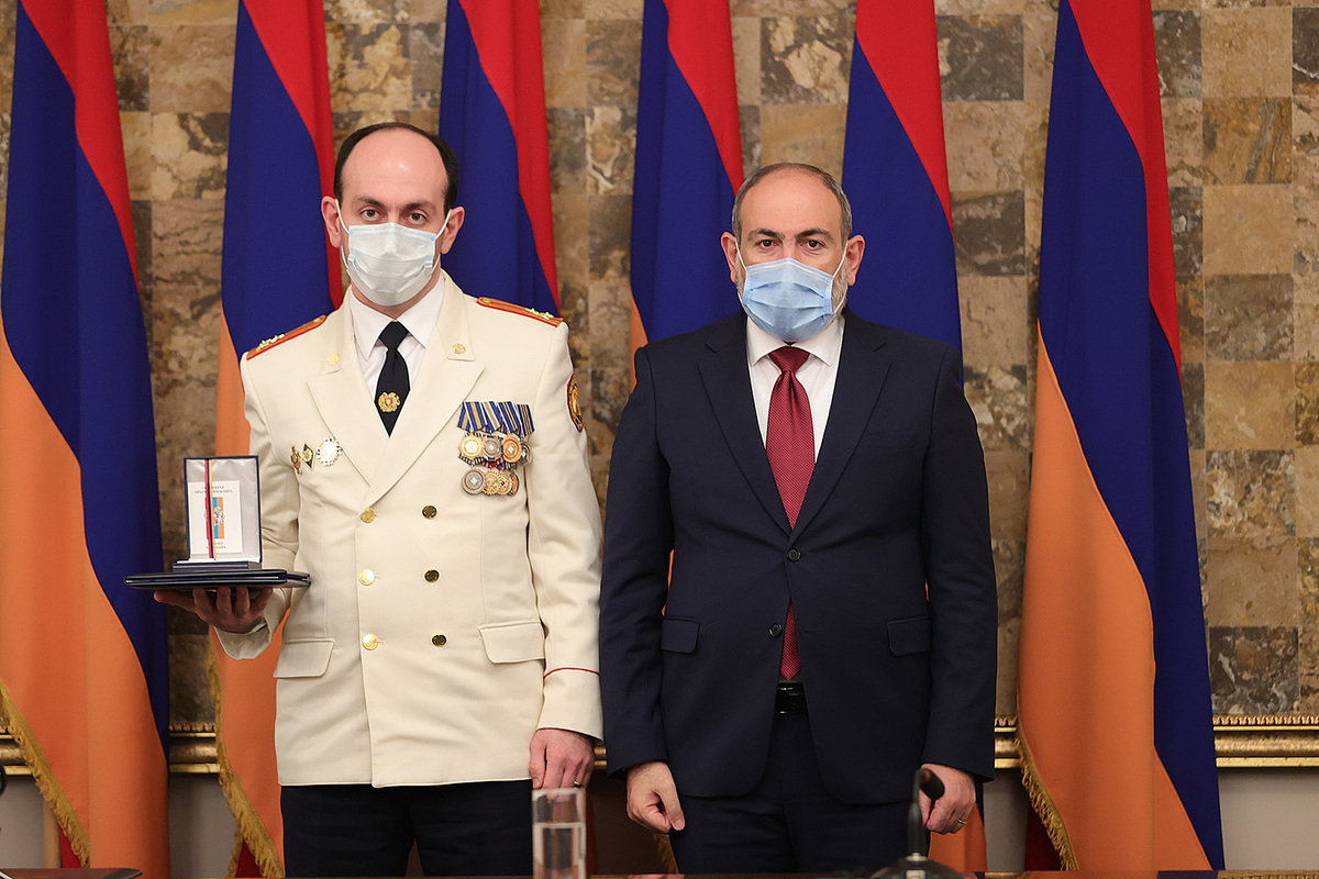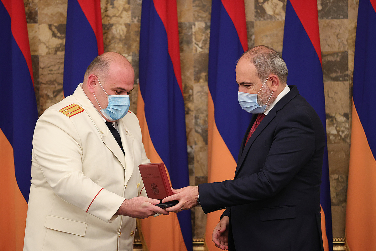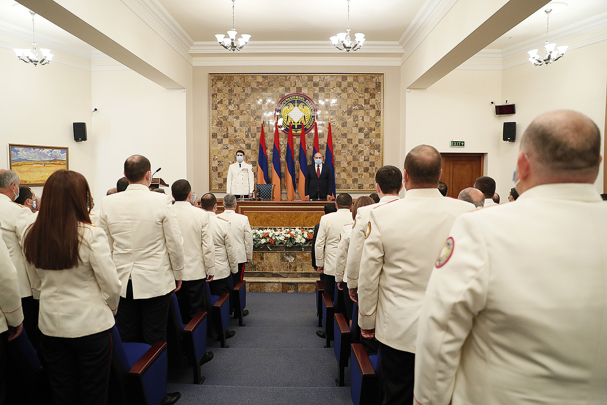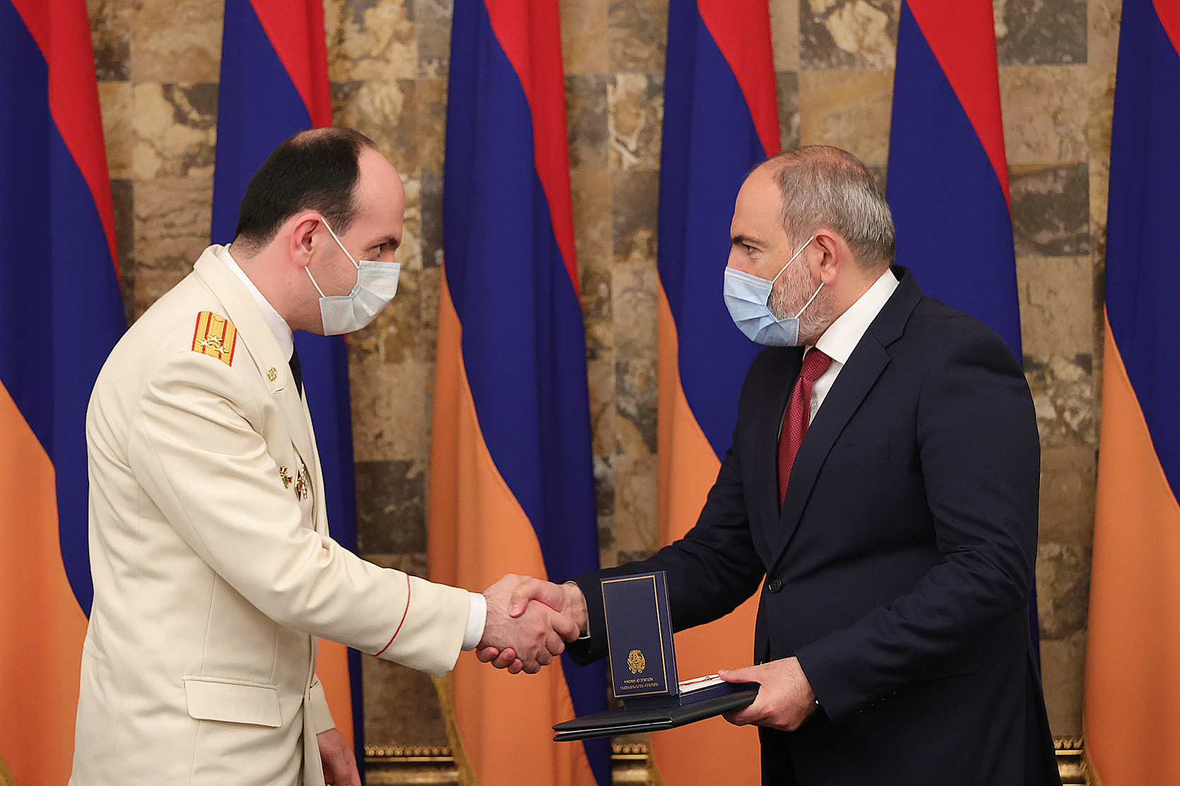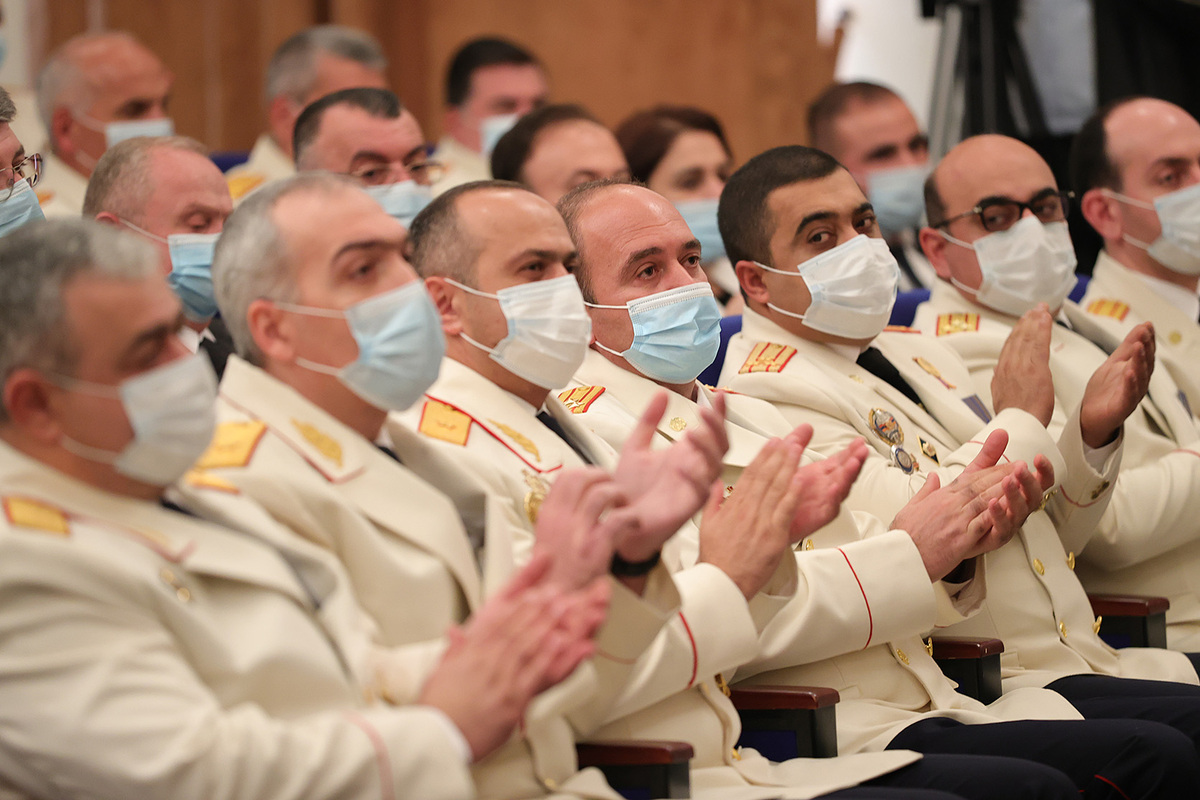 Затем состоялась торжественная церемония награждения: премьер-министр Никол Пашинян вручил государственные награды ряду сотрудников Следственного комитета за их вклад в укрепление законности.
