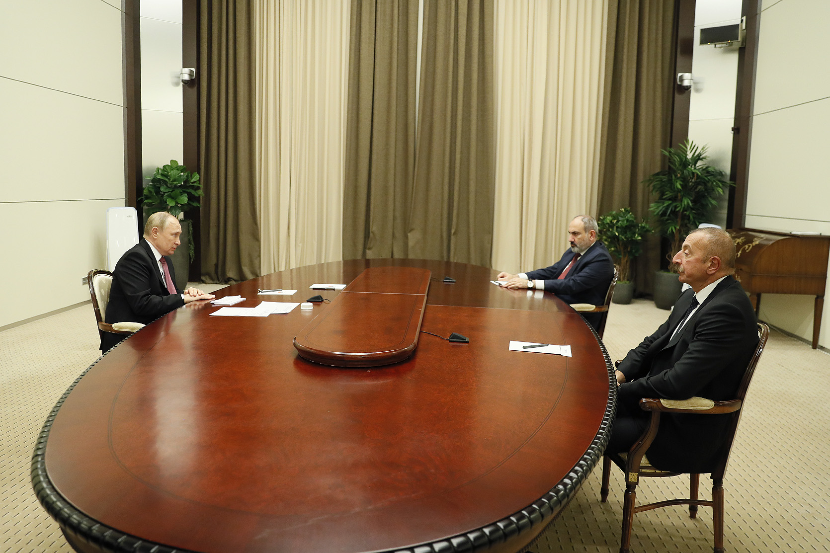 В российском городе Сочи состоялась трехсторонняя встреча премьер-министра Республики Армения Никола Пашиняна, президента Российской Федерации Владимира Путина и президента Азербайджанской Республики Ильхама Алиева.