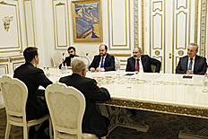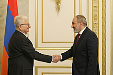 Премьер-министр Никол Пашинян принял сегодня известного физика, научного руководителя Лаборатории ядерных реакций Объединенного института ядерных исследований (ОИЯИ), академика Юрия Оганесяна и директора ОИЯИ, академика Григория Трубникова.