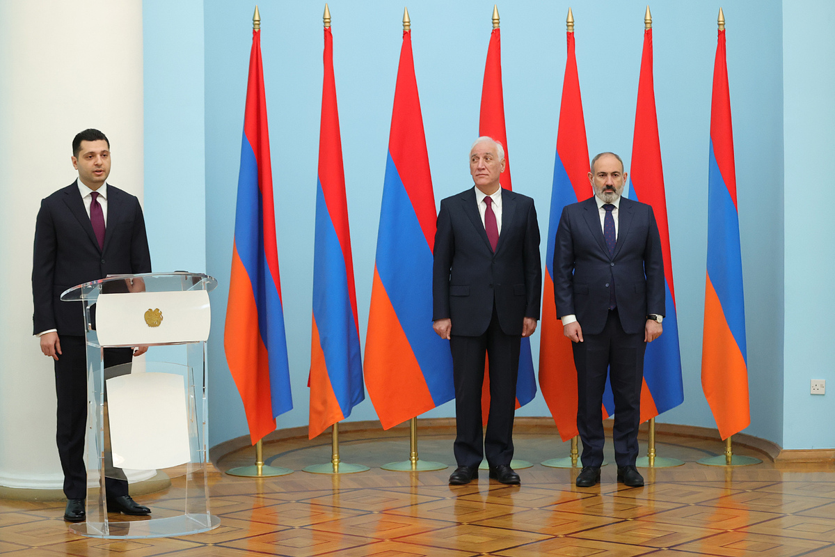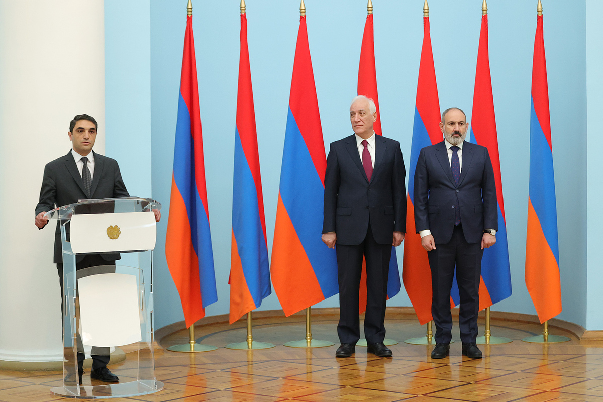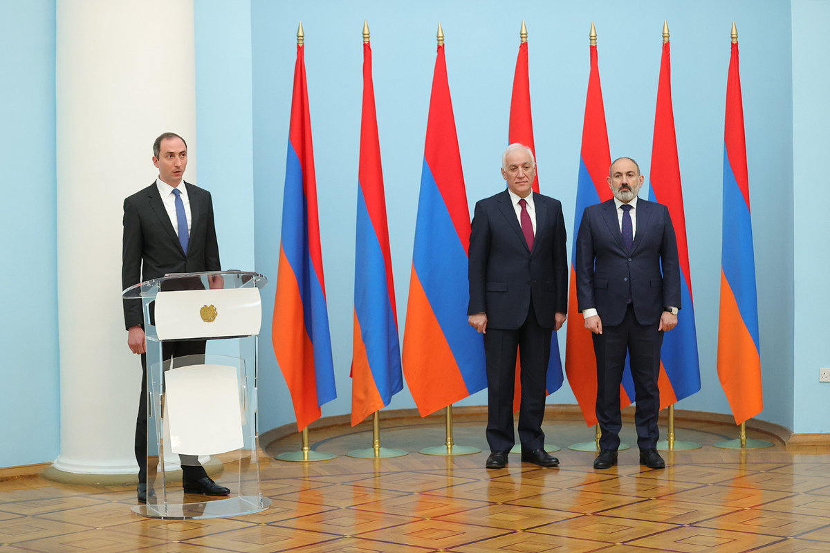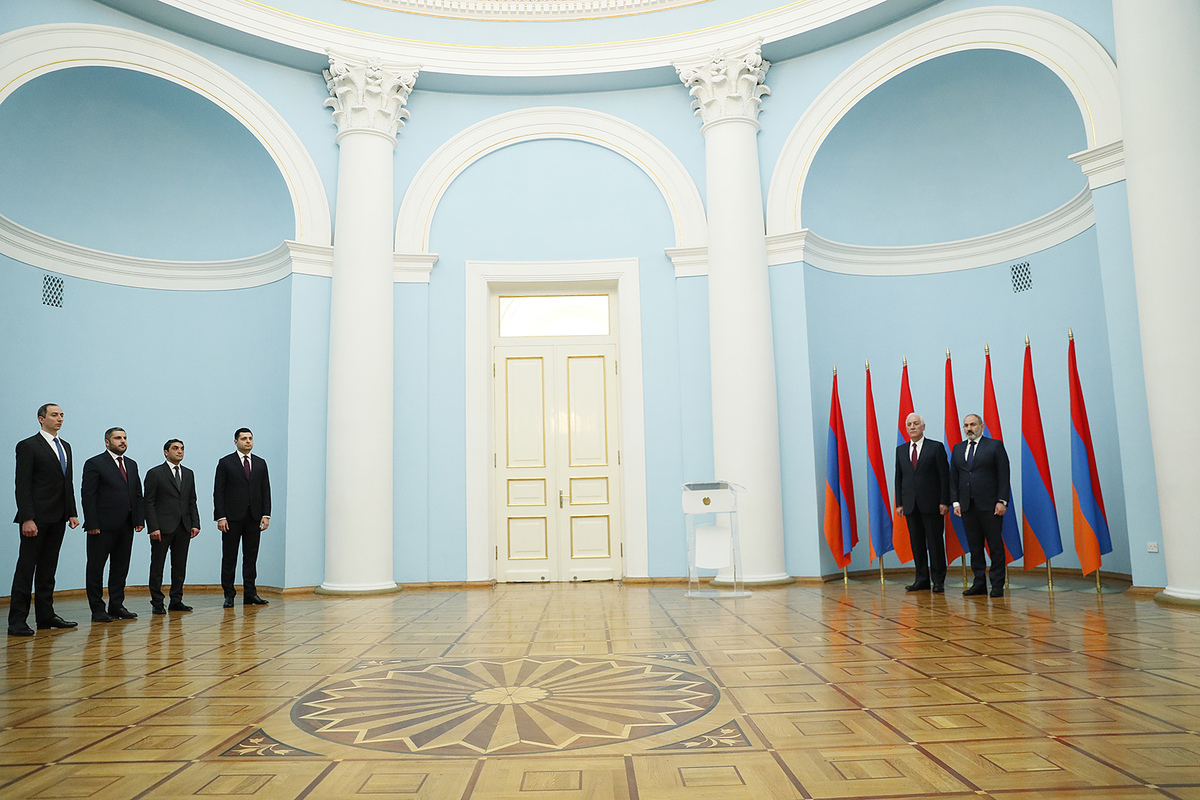 В резиденции президента в присутствии президента Республики Армения Ваагна Хачатуряна и премьер-министра Никола Пашиняна состоялась церемония принесения клятвы вице-премьером Амбарцумом Матевосяном, министром по чрезвычайным ситуациям Арменом Памбухчяном, министром окружающей среды Акопом Симидяном и министром высокотехнологической промышленности Робертом Хачатряном.