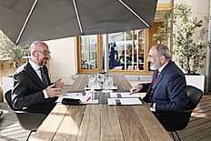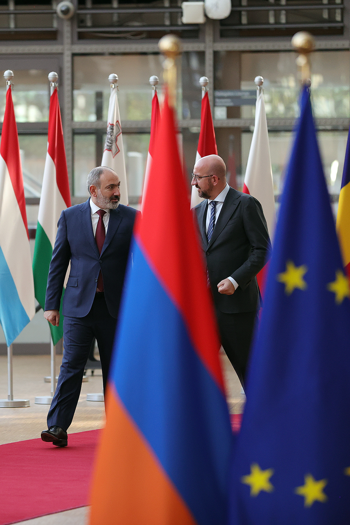 Находящийся с рабочим визитом в Брюсселе премьер-министр Никол Пашинян провел встречу с председателем Европейского совета Шарлем Мишелем.