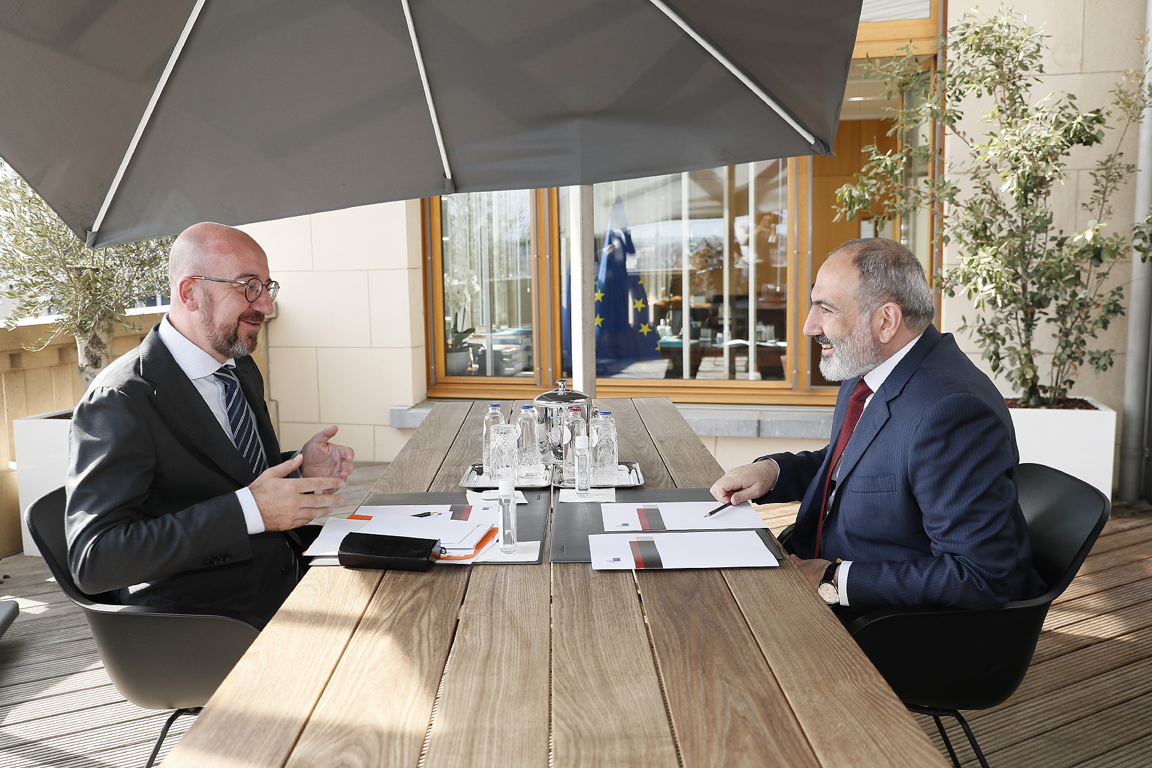 Премьер-министр Пашинян и Шарль Мишель обменялись мнениями о реализации договоренностей, достигнутых на состоявшихся в Брюсселе 14 декабря прошлого года, а также 6 апреля текущего года трехсторонних встреч.