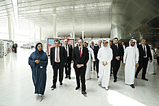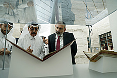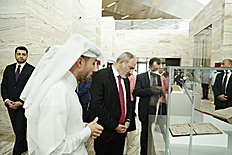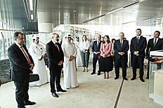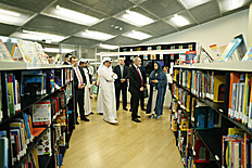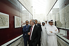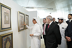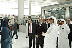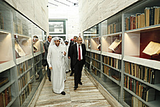 Премьер-министра в библиотеке приветствовал президент библиотеки, государственный министр Хамад бин Абдель Азиз аль-Кавари. В сопровождении последнего премьер-министр ознакомился с представленными на выставке экспонатами, затем совершил экскурсию по библиотеке и сделал запись в Книге почетных гостей.
