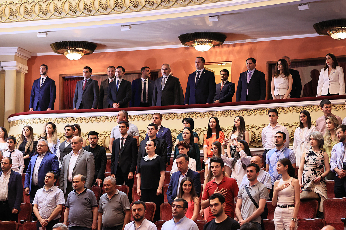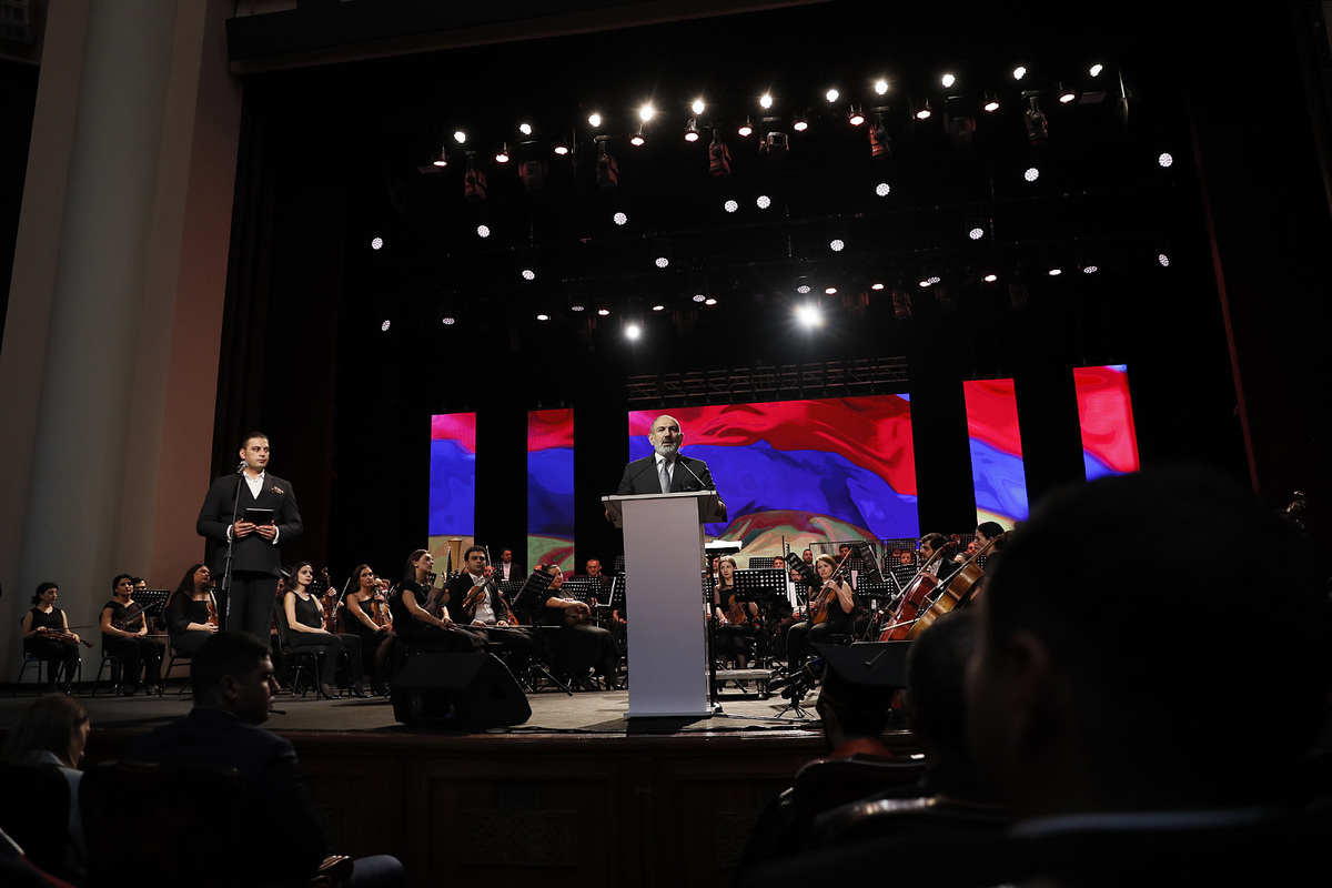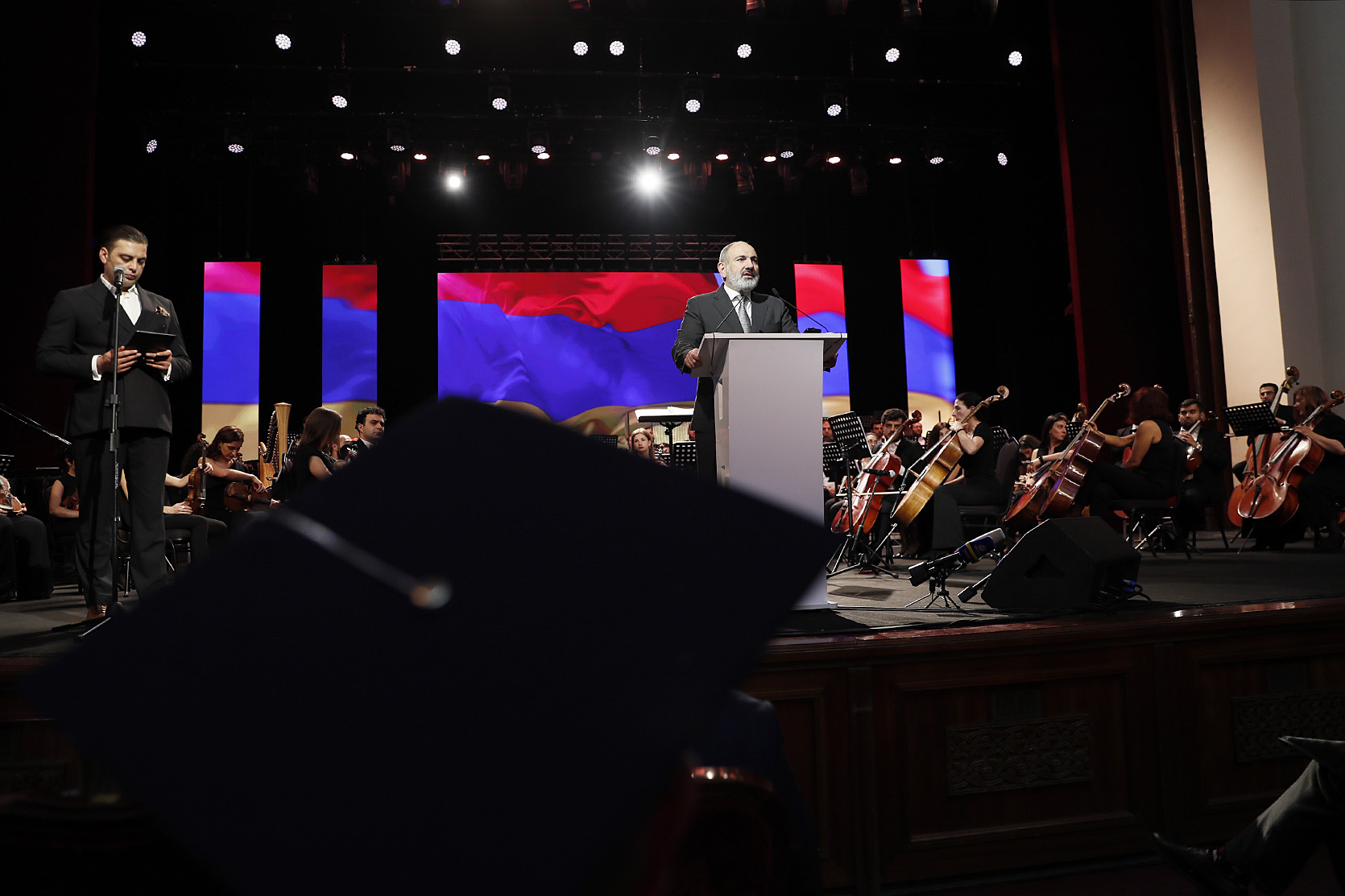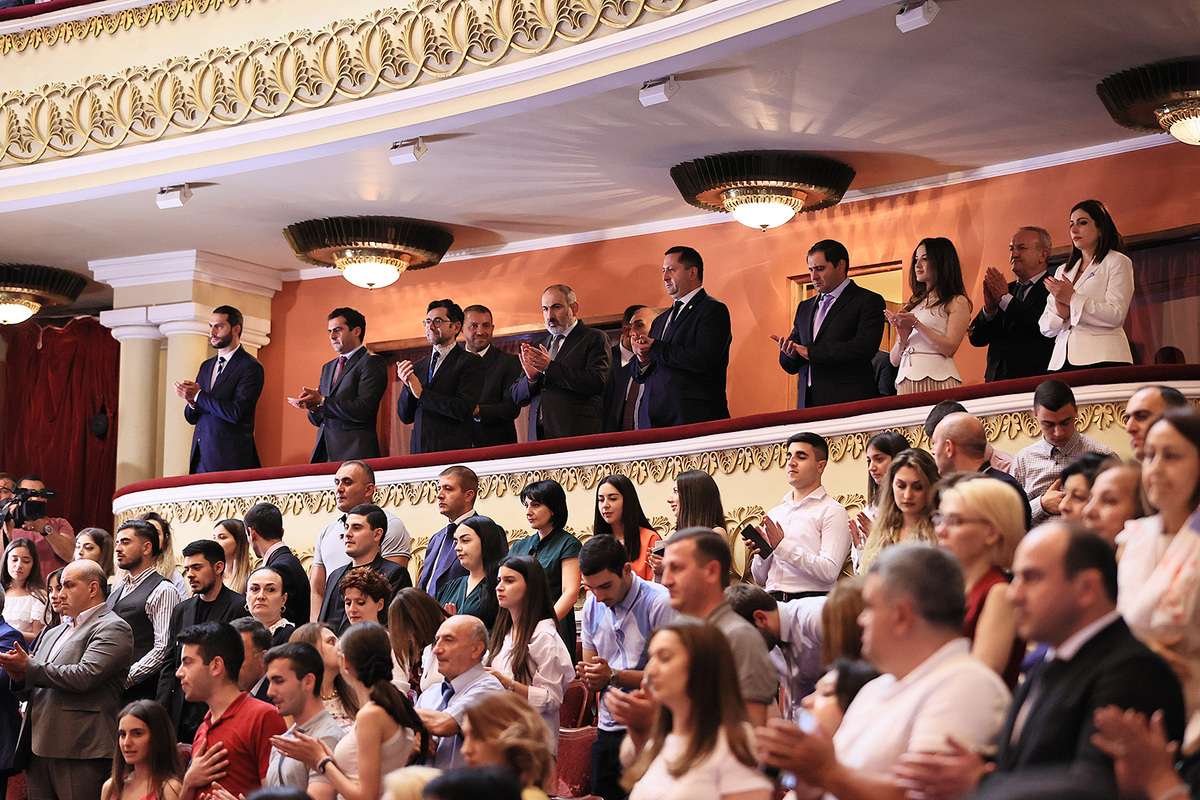 Премьер-министр Никол Пашинян в Национальном академическом театре оперы и балета им. А.Спендиаряна присутствовал на выпускном мероприятии Ереванского государственного университета.