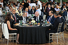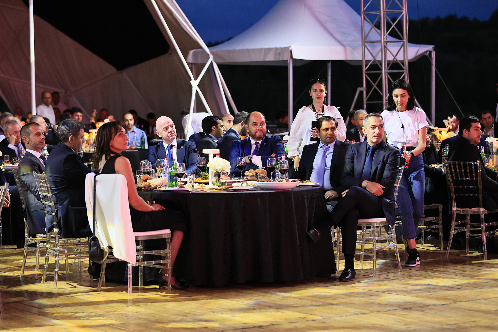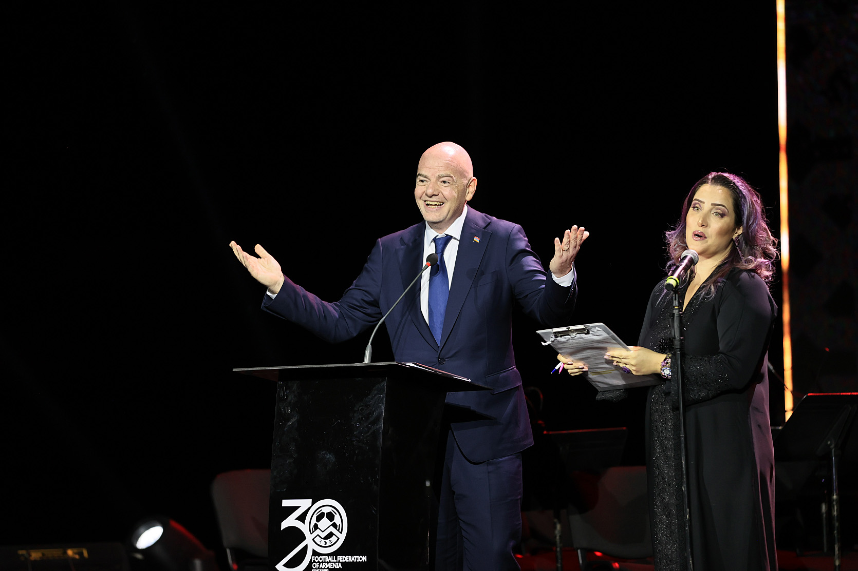 Я хочу, чтобы мы особо поприветствовали присутствие наших партнеров, президентов ФИФА и УЕФА, на столь важном для нас мероприятии. Но, как и в случае с прямым эфиром, выражением этой дружбы, доверительного партнерства является не эти, условно говоря, 90 минут, а то, что было до этого. За последние три года при поддержке ФИФА Федерация футбола Армении построила 90 новых маленьких стадионов в 7 областях Армении, на которые ФИФА предоставит около 2,5 млн долларов.