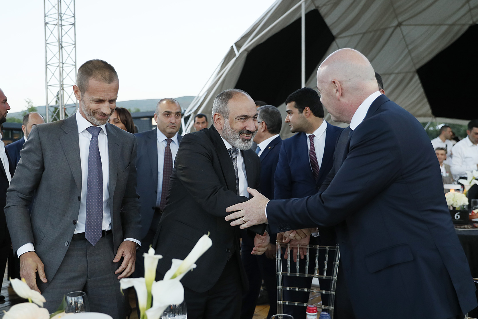 Премьер-министр Никол Пашинян вместе с руководителем аппарата премьер-министра Армении Араиком Арутюняном и членами правительства принял участие в мероприятии, посвященном 30-летию создания Федерации футбола Армении. В мероприятии также приняли участие президент ФИФА Джанни Инфантино и президент УЕФА Александер Чеферин.