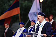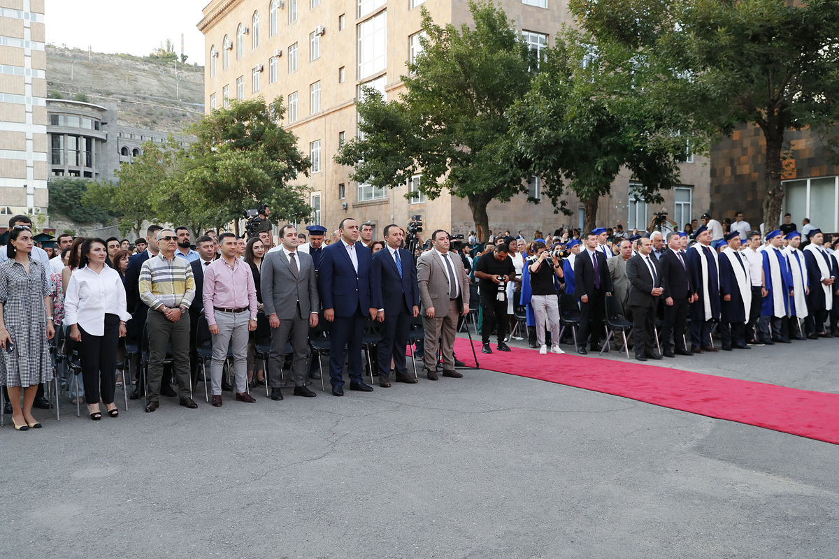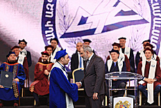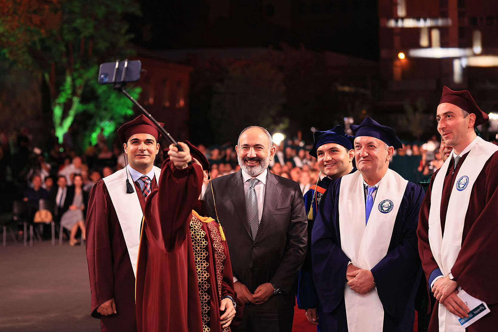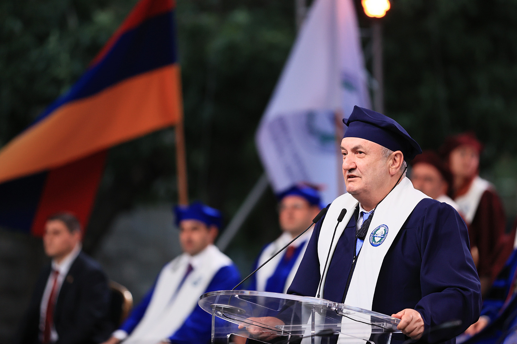 Дорогие выпускники, поздравляю вас и хочу верить, что вы покидаете университет с миссией делать Армению все лучше и лучше с каждым днем, с миссией постоянно делать Армению все более технологически развивающейся и, в конце концов, очень развитой страной. Хочу пожелать вам всего наилучшего на пути выполнения этой поистине эпохальной миссии.