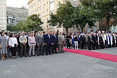 В торжественном мероприятии также приняли участие министр образования, науки, культуры и спорта Армении Ваграм Думанян, председатель Совета НПУА Тигран Авинян, другие должностные лица, попечители, меценаты университета, известные выпускники, профессорско-преподавательский состав, выпускники этого года и их родители.