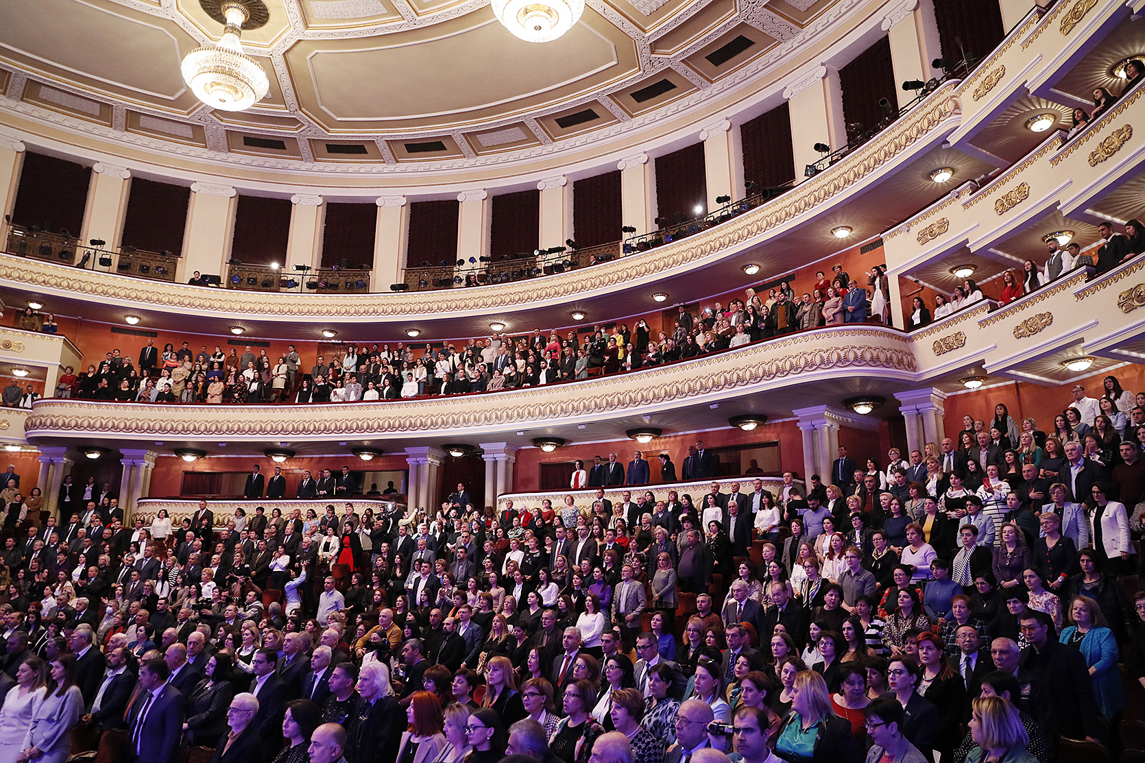 Премьер-министр Никол Пашинян в Национальном академическом театре оперы и балета имени Александра Спендиаряна присутствовал на мероприятии, посвященном 100-летию со дня основания Армянского государственного педагогического университета имени Хачатура Абовяна. В мероприятии также приняли участие министр образования, науки, культуры и спорта Ваграм Думанян, заместитель министра Жанна Андреасян, министр экономики Ваан Керобян, ректор вуза Србуи Геворкян, депутаты, аккредитованные в Республике Армения послы.