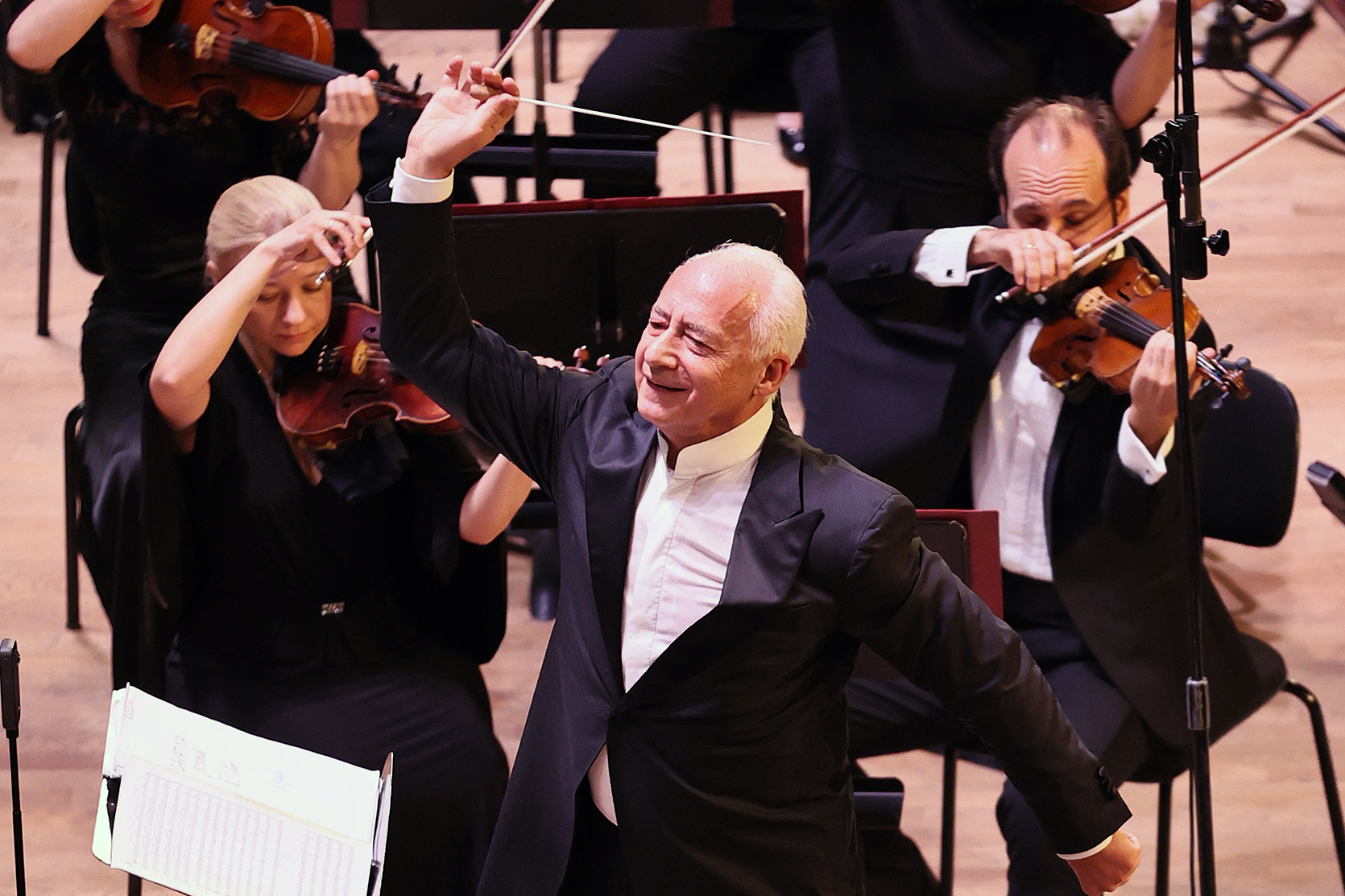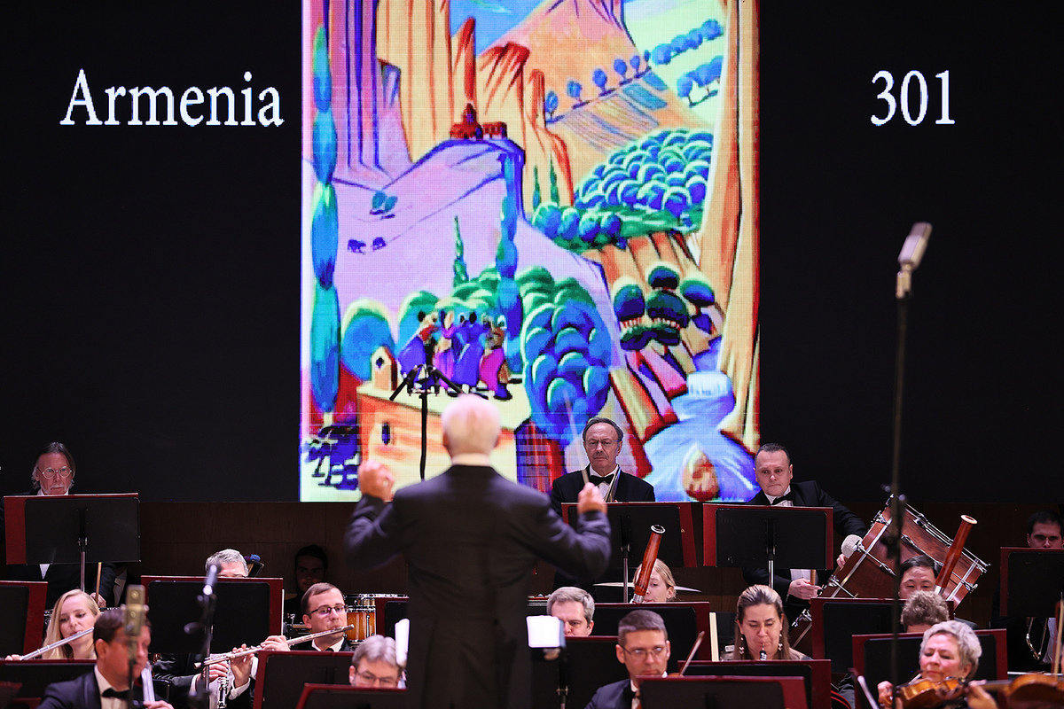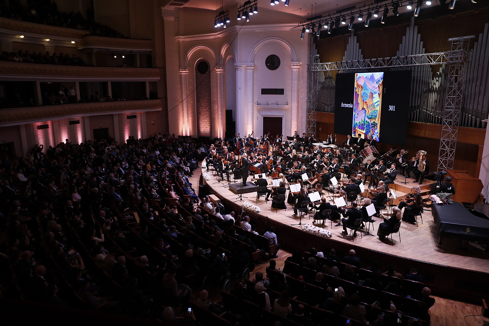 Премьер-министр Никол Пашинян с супругой Анной Акопян в Концертном зале имени Арама Хачатуряна присутствовали на благотворительном концерте Национального филармонического оркестра России под управлением всемирно известного дирижера Владимира Спивакова.