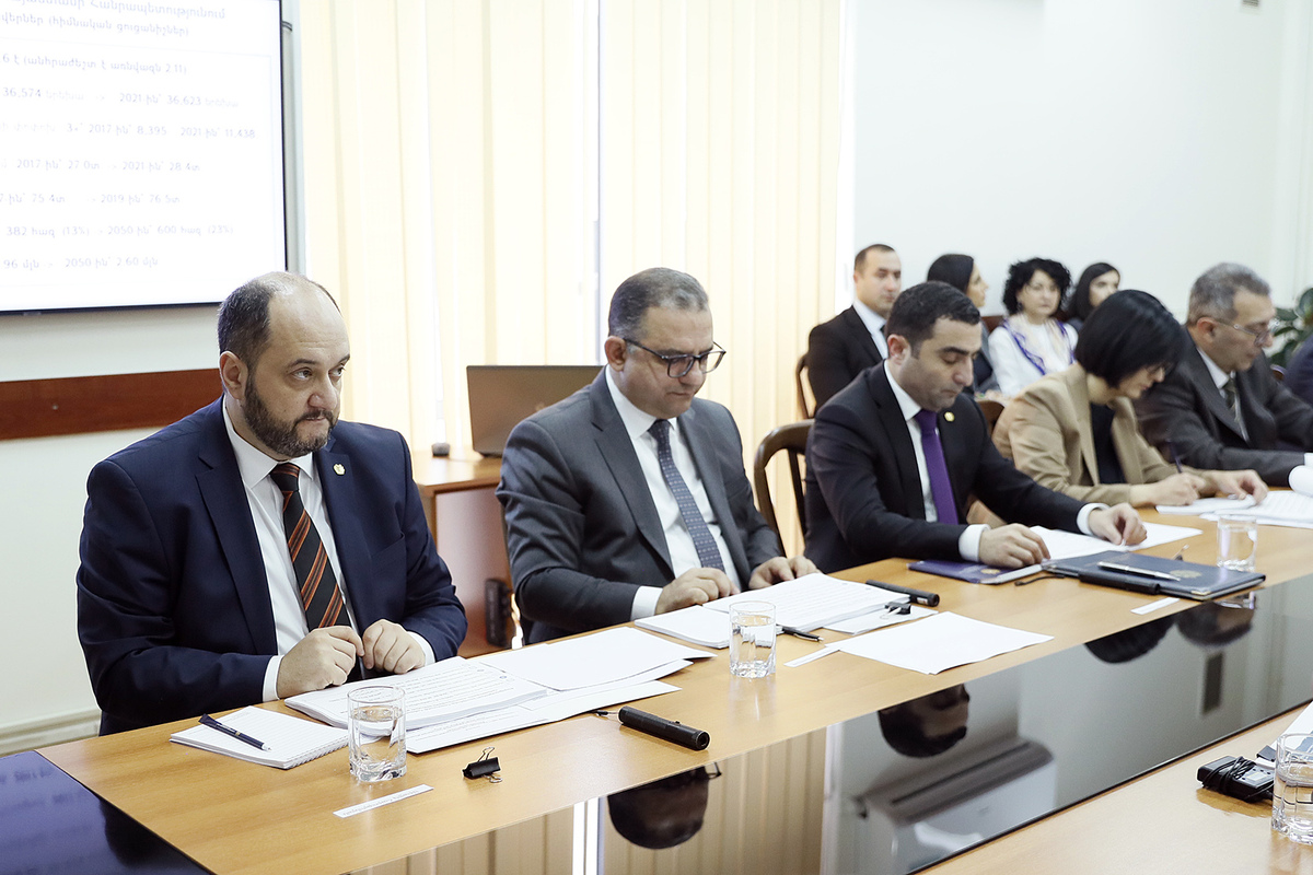 Министр труда и социальных вопросов Нарек Мкртчян и заместители министра представили программы и мероприятия министерства по отраслевым направлениям.