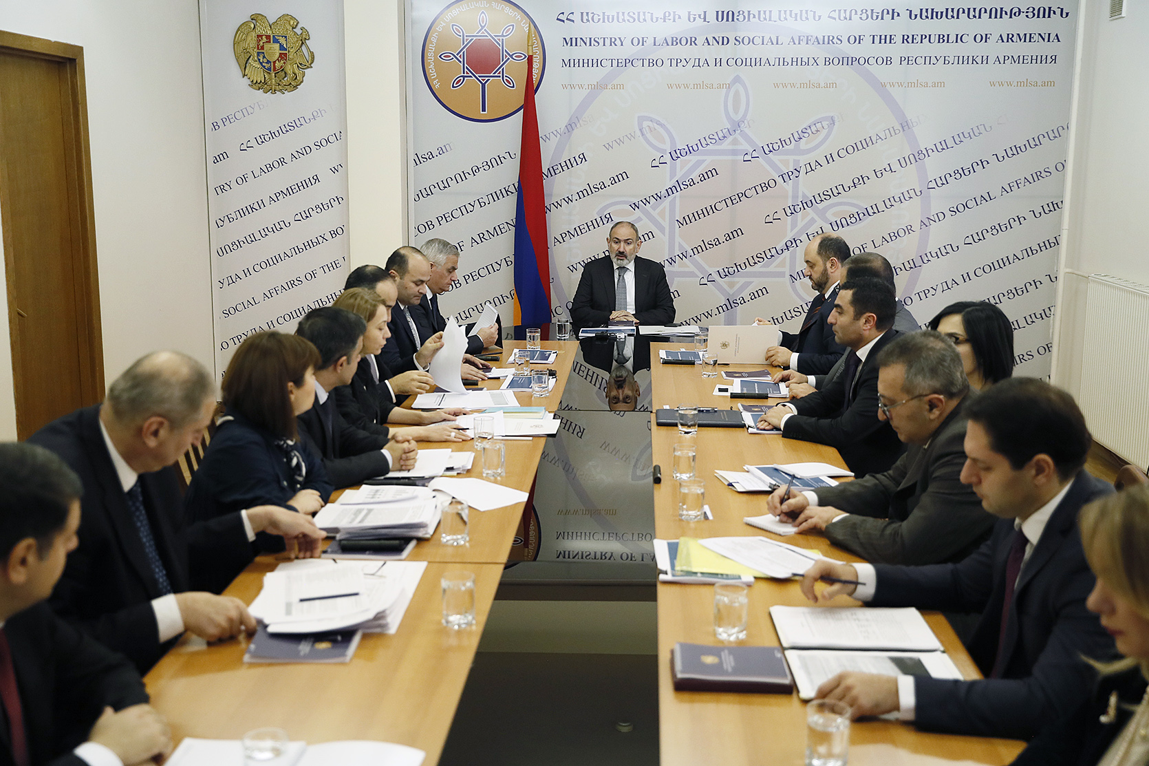 В совещании приняли участие вице-премьер Мгер Григорян, руководитель аппарата премьер-министра Араик Арутюнян, министр труда и социальных вопросов Нарек Мкртчян, министр финансов Тигран Хачатрян, руководитель Службы государственного надзора Романос Петросян, сотрудники аппарата премьер-министра, руководящий состав аппарата министерства и другие должностные лица.