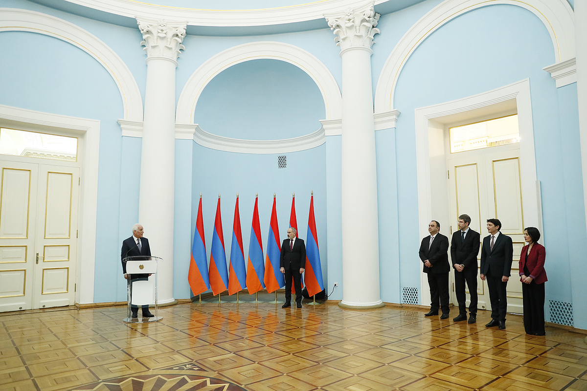В резиденции президента в присутствии президента Республики Армения Ваагна Хачатуряна и премьер-министра Никола Пашиняна состоялась церемония принесения клятвы министром внутренних дел Ваге Казаряном, министром финансов Ваге Ованнисяном, министром образования, науки, культуры и спорта Жанной Андреасян и министром юстиции Григором Минасяном.