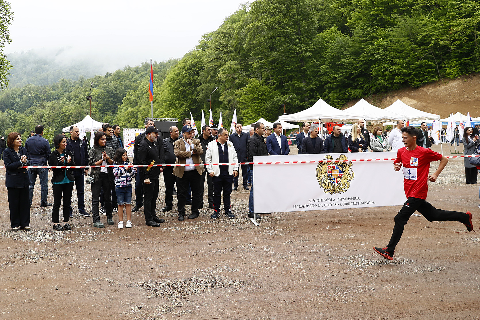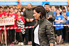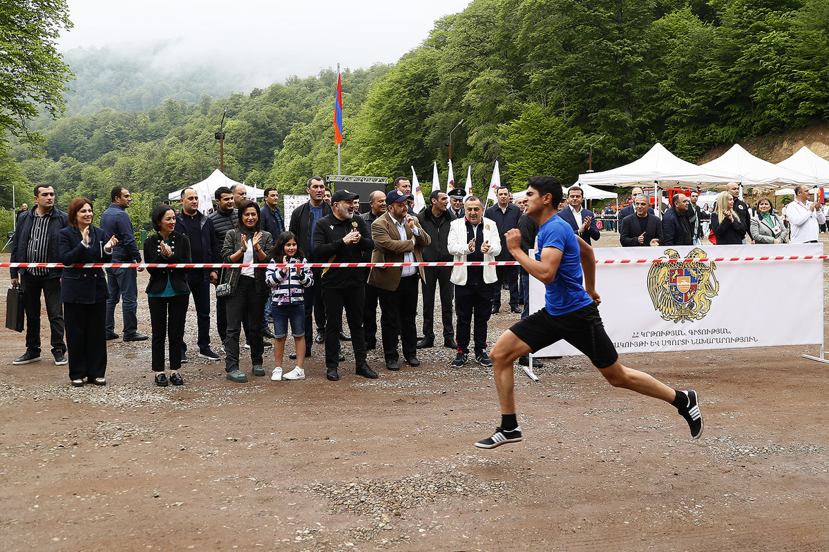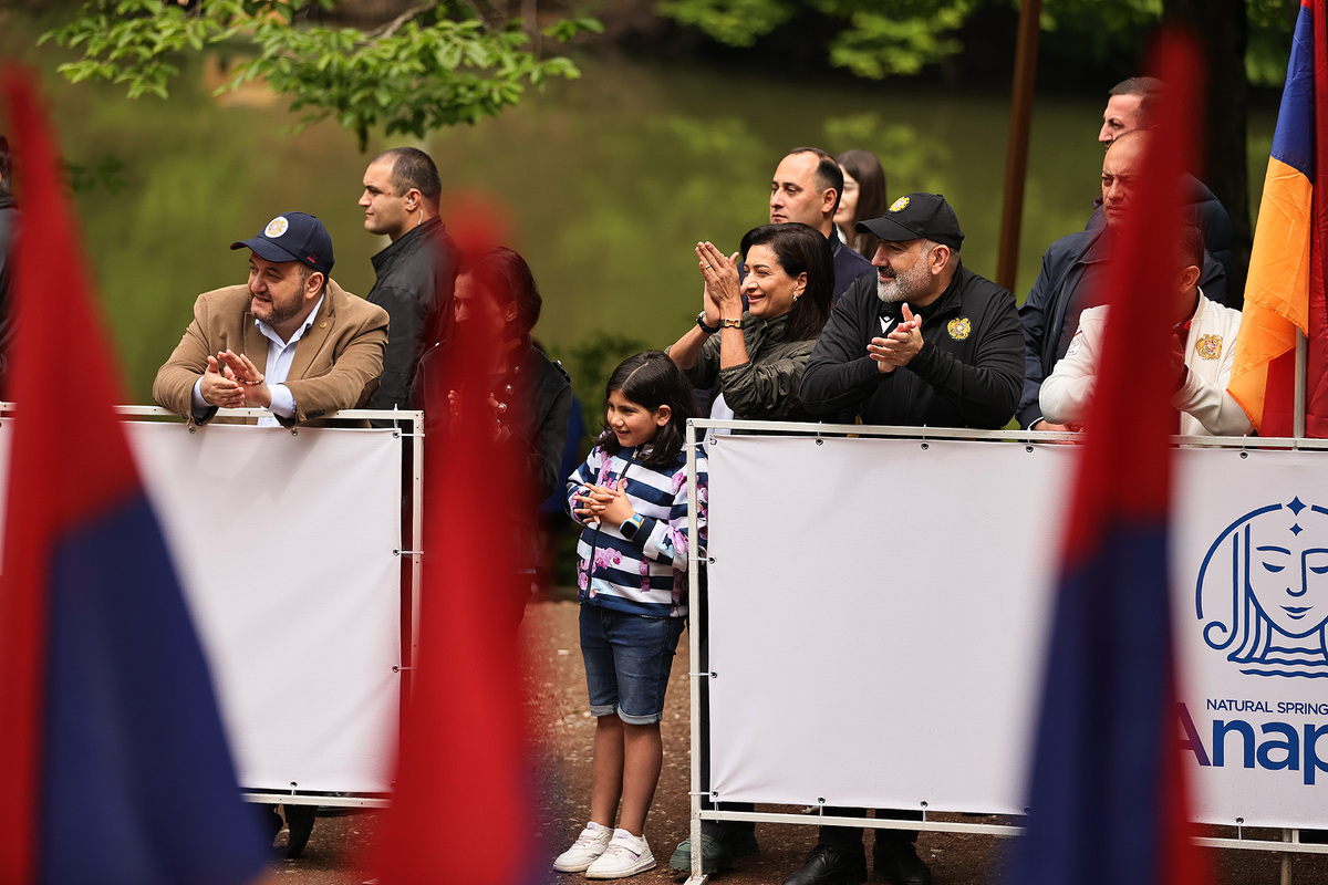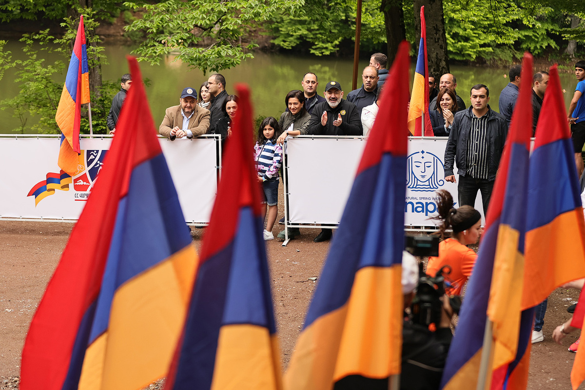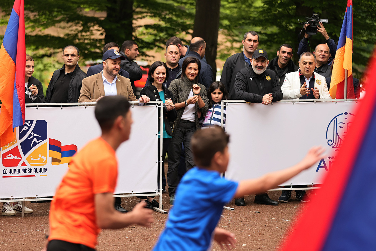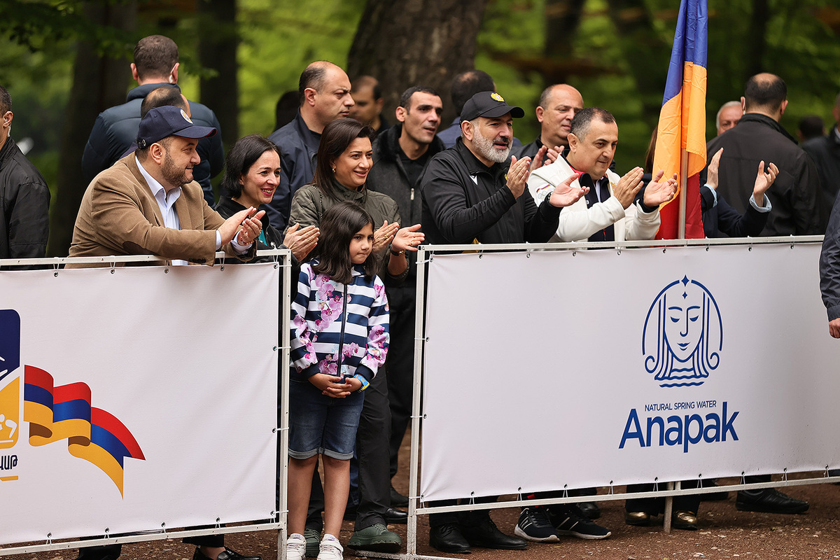 Премьер-министр Никол Пашинян вместе с супругой Анной Акопян и дочерью Арпи Пашинян на территории около озера Парз Тавушской области присутствовал на соревновании “Кубка премьер-министра Республики Армения” по командному шоссейному бегу среди школьников.