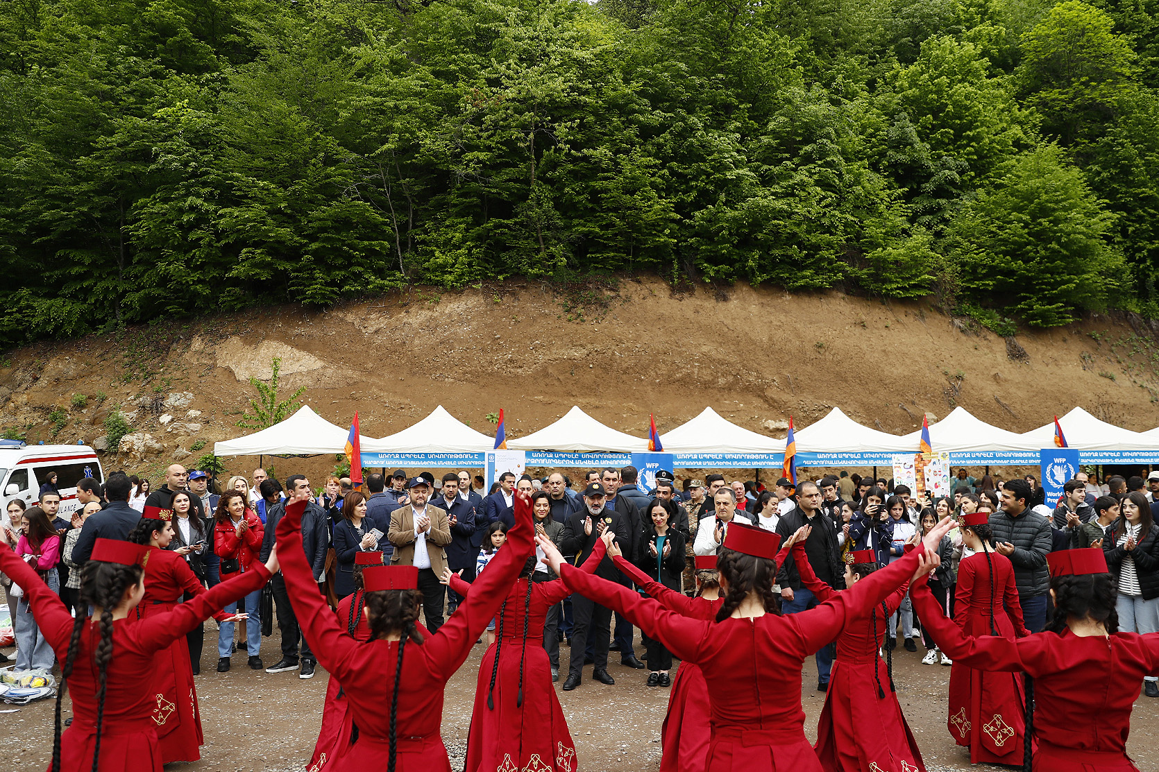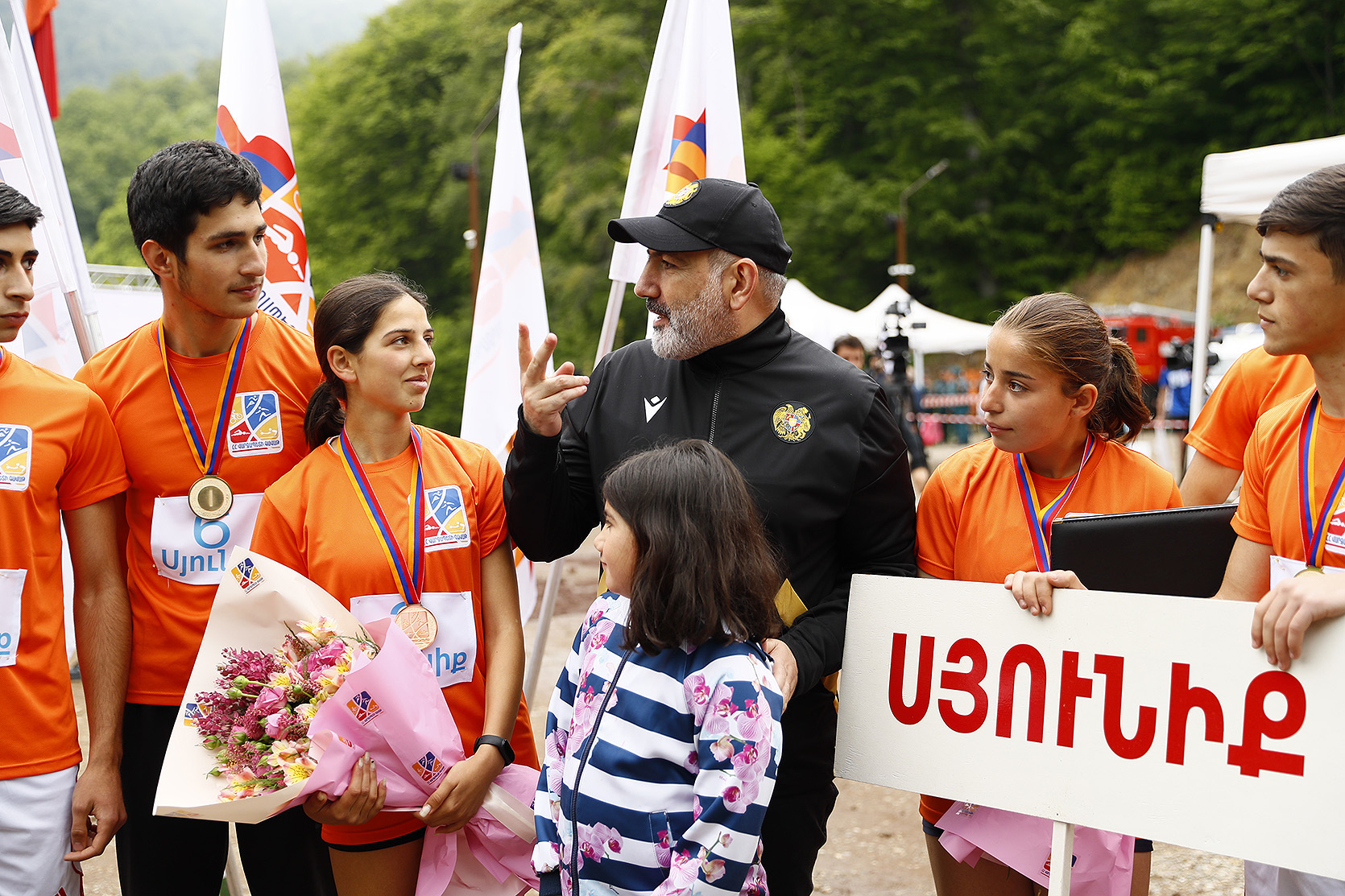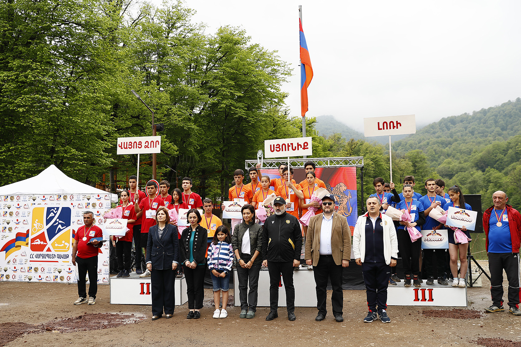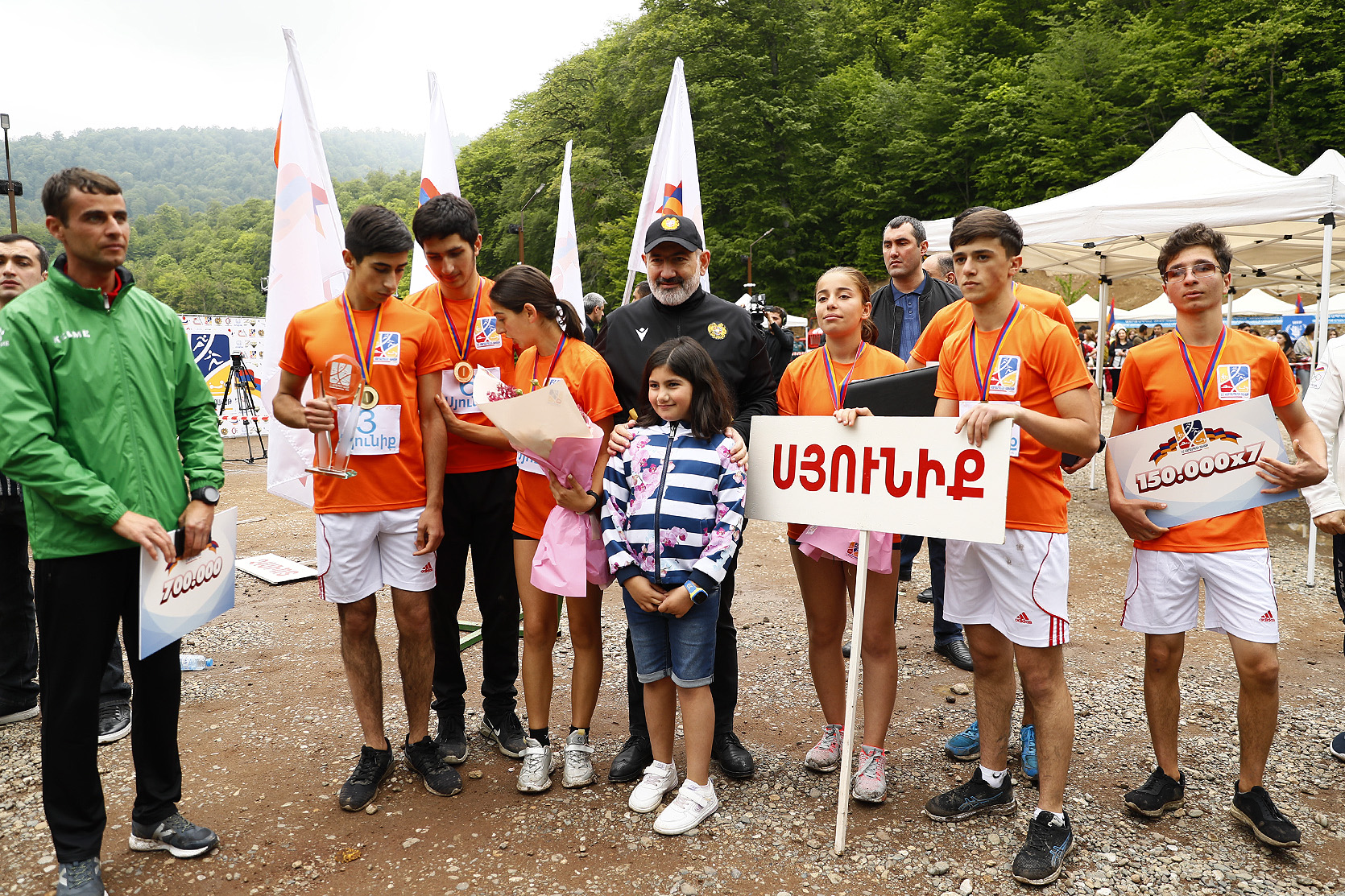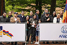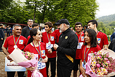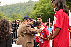 Премьер-министр Никол Пашинян вместе с супругой Анной Акопян и дочерью Арпи Пашинян на территории около озера Парз Тавушской области присутствовал на соревновании “Кубка премьер-министра Республики Армения” по командному шоссейному бегу среди школьников.