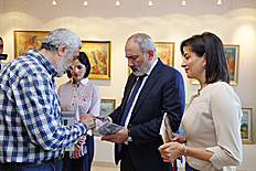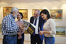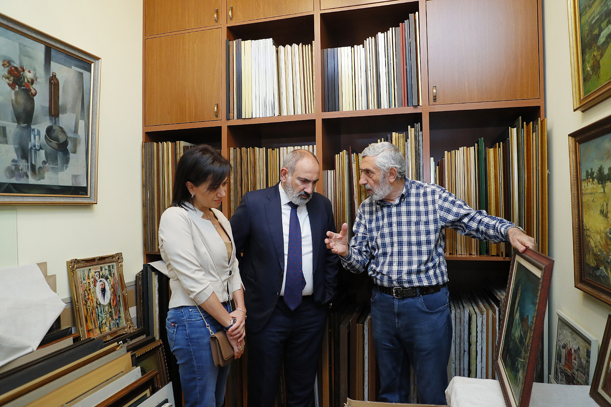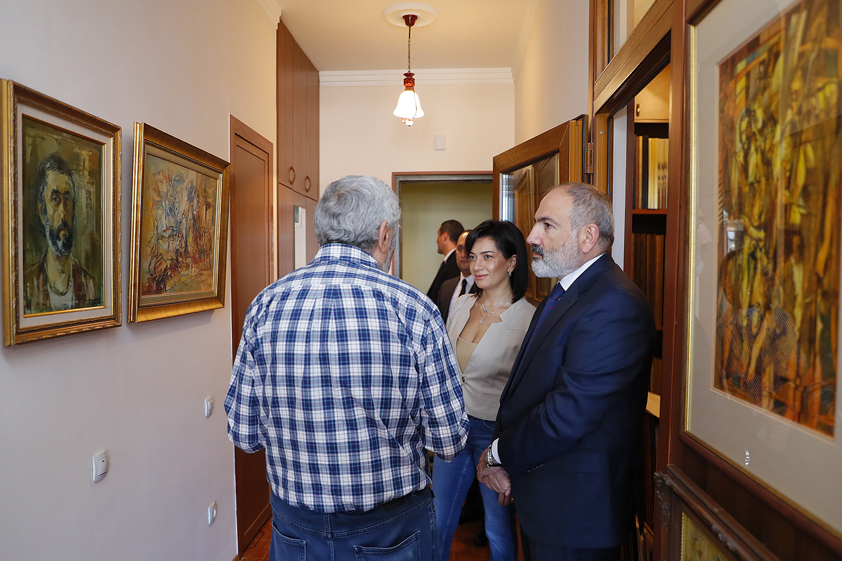 Премьер-министр Никол Пашинян вместе с супругой Анной Акопян и министром образования, науки, культуры и спорта Жанной Андреасян посетил мастерскую и художественную галерею Народного художника Республики Армения Валмара (Владимира Маргаряна).