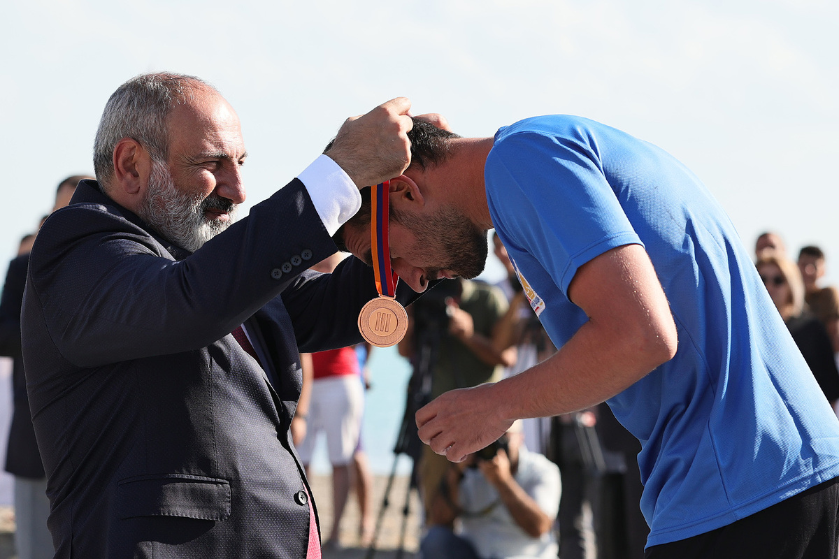 Премьер-министр Никол Пашинян принял участие в церемонии награждения победителей любительского турнира по плаванию “Кубок премьер-министра Республики Армения”.