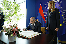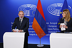 В Страсбурге, в Европейском парламенте, премьер-министр Никол Пашинян провел встречу с председателем Европейского парламента Робертой Метсолой. После встречи стороны выступили с заявлениями для прессы и ответили на вопросы журналистов.