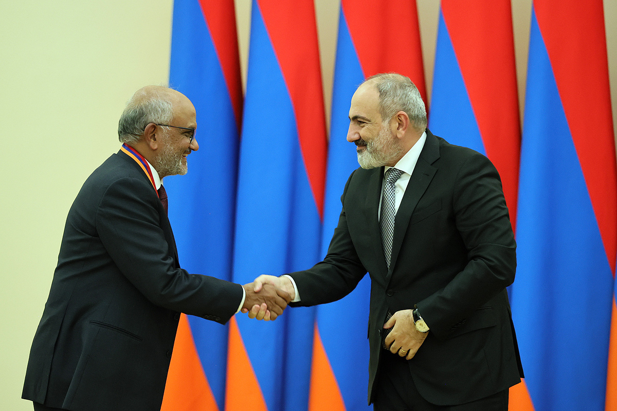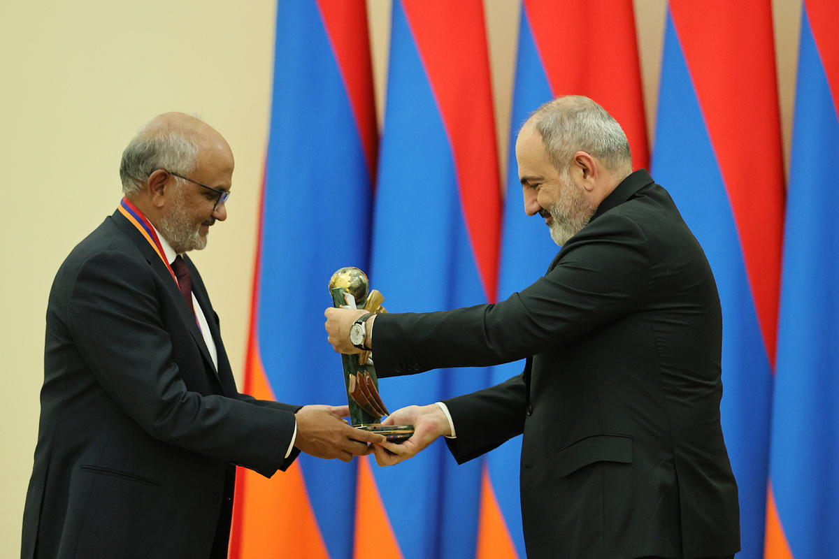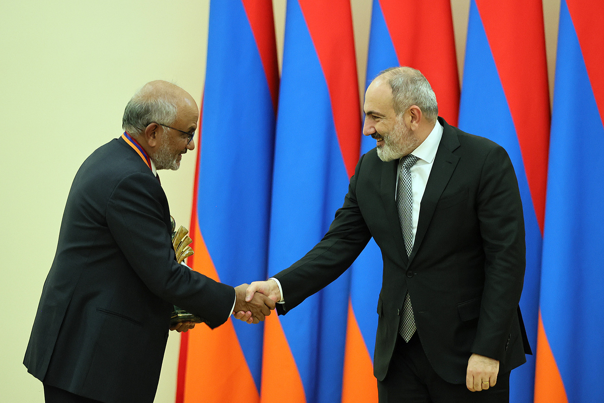 Премьер-министр Пашинян вручил Государственную премию Республики Армения за всемирный вклад в сферу информационных технологий президенту компании “Adobe” Шантану Нарайену