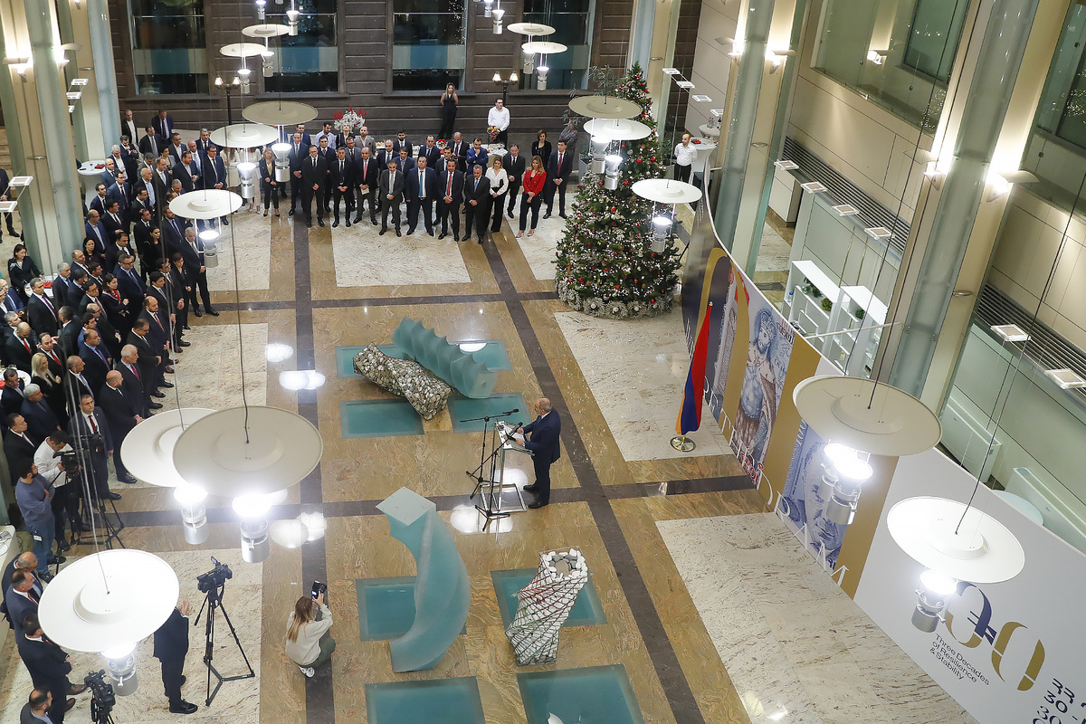 Благодарю вас за эту готовность и настрой, чтобы в следующем году, когда мы соберемся здесь, не только банковская система, но и макроэкономические показатели Армении в целом оказались в зеленой зоне и мы все чувствовали себя удовлетворенными нашей работой, были обеспечены экономическим ростом и развитием. Желаю вам и членам ваших семей счастливого Рождества и Нового года!”
