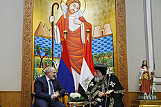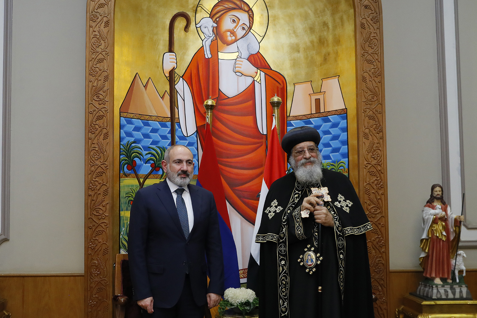 В рамках официального визита в Египет премьер-министр Никол Пашинян посетил собор Святого Марка в Каире, где провел встречу с патриархом Коптской православной церкви, Папой Александрийским и Патриархом Престола святого Марка во всей Африке и на Ближнем Востоке Феодором (Тавадросом) Вторым.
