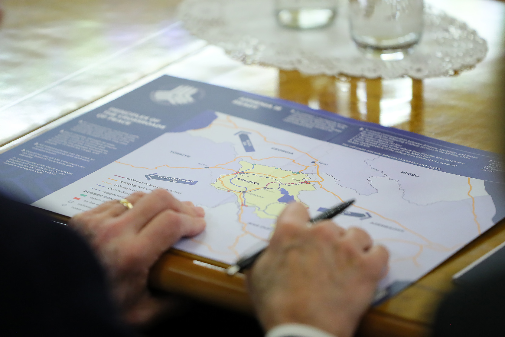 Были затронуты шаги правительства Республики Армения по развитию демократических институтов в Армении и борьбе с коррупцией. Состоялся обмен мыслями о текущих обсуждениях мирного договора между Арменией и Азербайджаном, проекте правительства Республики Армения “Перекресток мира”, происходящих в регионе процессах и представляющих взаимный интерес других вопросах.