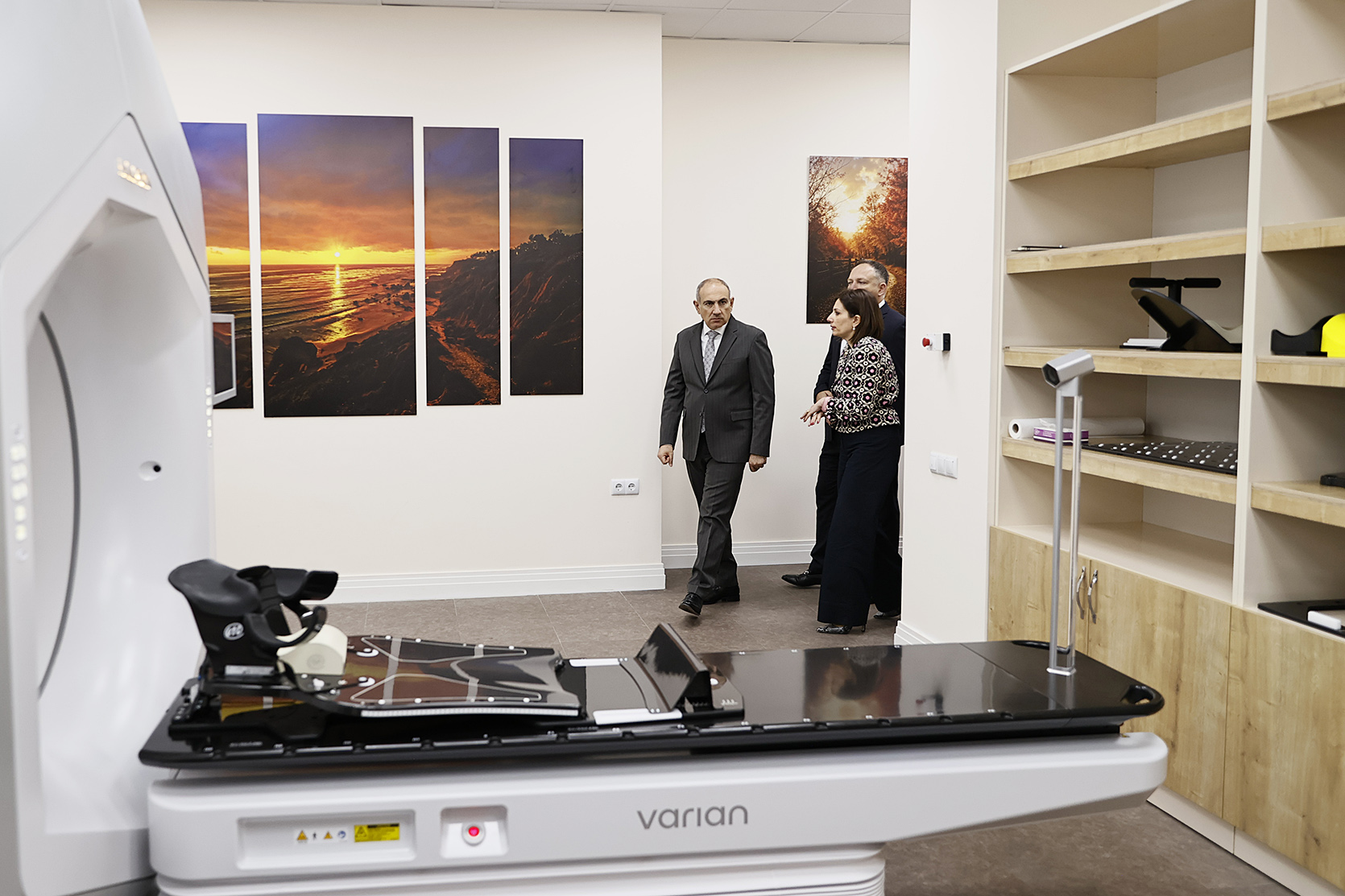 Премьер-министр в сопровождении министра здравоохранения Анаит Аванесян и директора Национального центра онкологии Нарека Манукяна осмотрел вновь открывшийся радиотерапевтический корпус, ознакомился с проведенными работами и оснащением центра. Ответственные лица представили премьер-министру особенности деятельности радиотерапевтического корпуса и предстоящие программы. Было отмечено, что для оказания качественных медицинских услуг радиотерапевтический корпус оснащен ускорительным комплексом лучевой терапии последнего поколения Halcyon известной американской компании «Varian», а в ближайшие месяцы планируется установить еще два многофункциональных современных медицинских ускорителя. По словам ответственных лиц, в оснащенном современным необходимым оборудованием корпусе будут оказываться качественные и доступные медицинские услуги. В результате пациенты получат полную, точную и не уступающие международным стандартам медицинскую помощь.