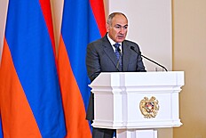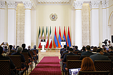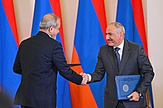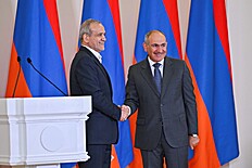Позвольте еще раз приветствовать Вас и возглавляемую Вами делегацию в Республике Армения. Ваш визит свидетельствует о высоком уровне отношений между нашими странами, и мы этому рады. Нам уже удалось обсудить довольно широкий круг вопросов, и я рад констатировать, что, по моему впечатлению, в результате этих обсуждений наше взаимное доверие еще больше укрепилось. Еще раз приветствую Вас и добро пожаловать!»
