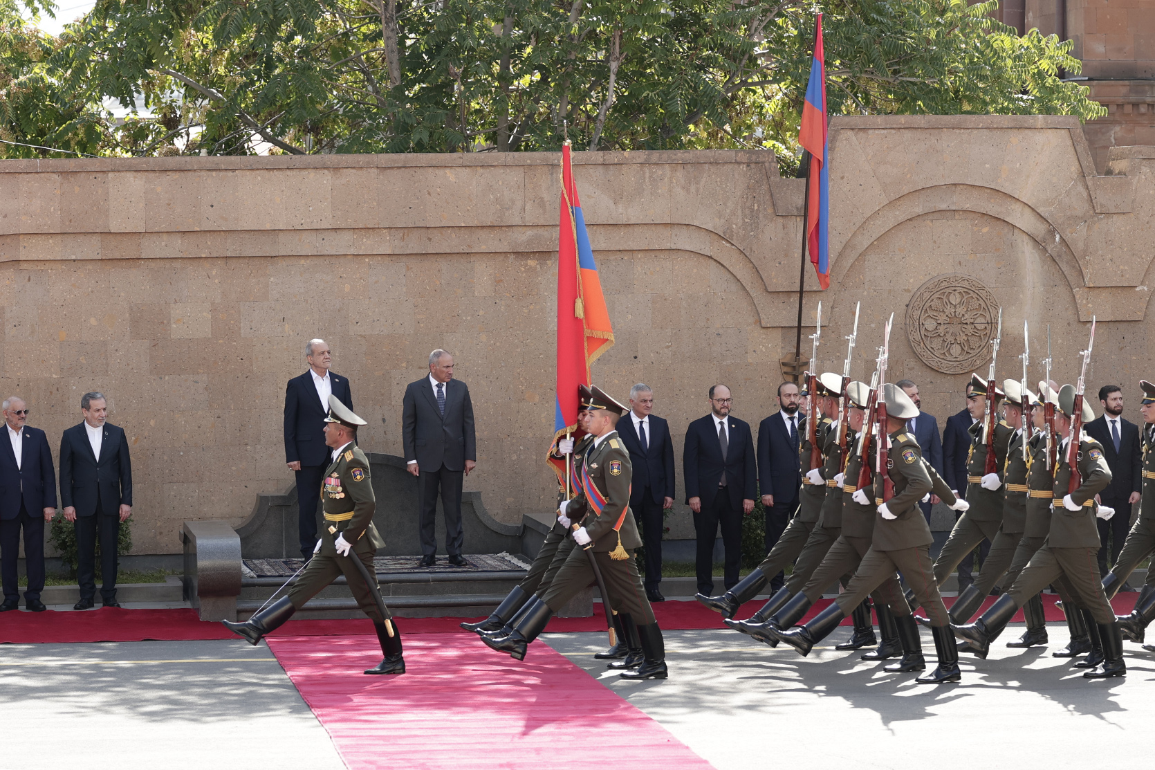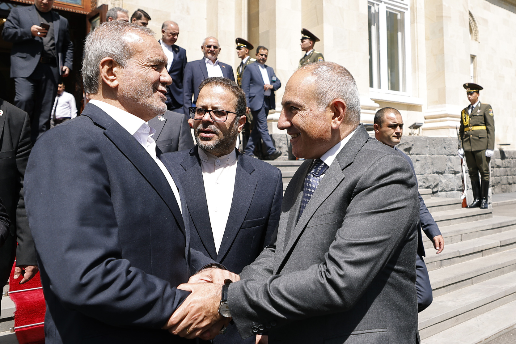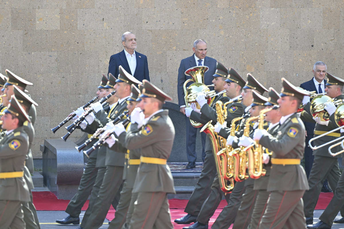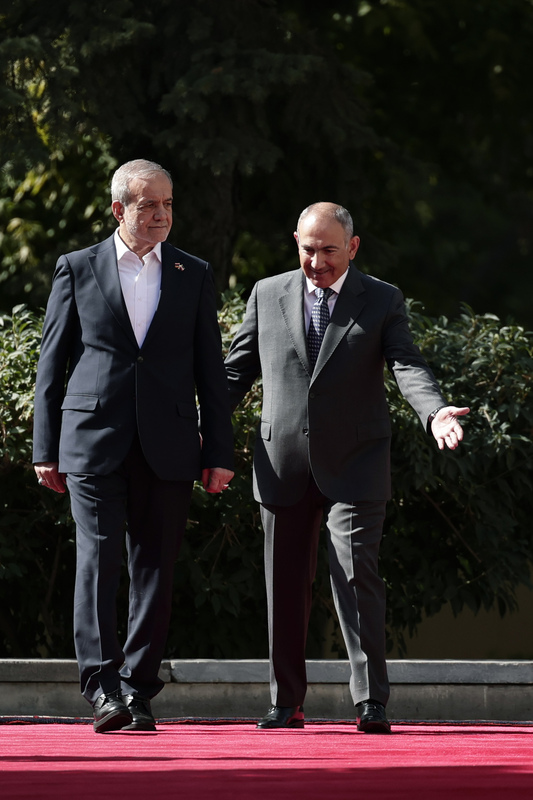 Премьер-министр Никол Пашинян принял прибывшего в Армению с официальным визитом президента Ирана Масуда Пезешкиана. Сначала состоялась официальная церемония встречи, в ходе которой прозвучали государственные гимны Армении и Ирана, после чего лидеры двух стран приветствовали членов делегаций.