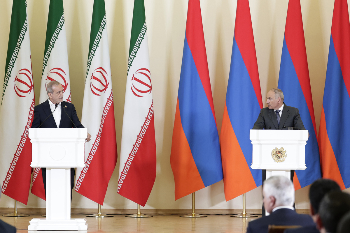 Премьер-министр Армении Никол Пашинян и президент Ирана Масуд Пезешкиан выступили с заявлениями для представителей СМИ.